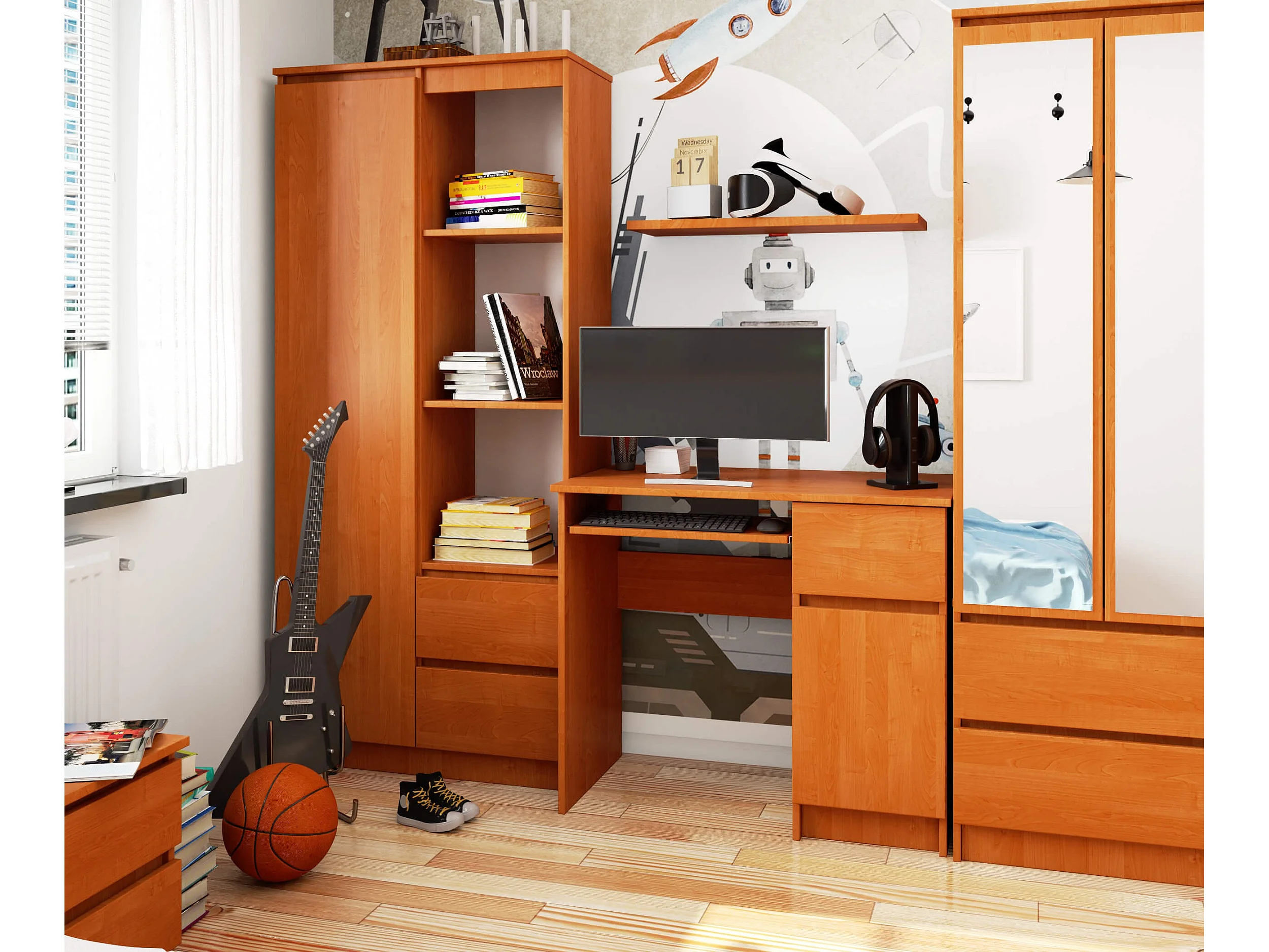 Bureau d'ordinateur AKORD droit PIKSEL Aulne 90 cm 1 porte 1 tiroir façade Aulne 3 étagères 90x50x77 cm