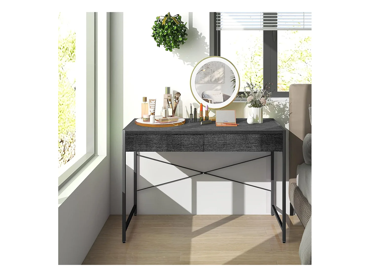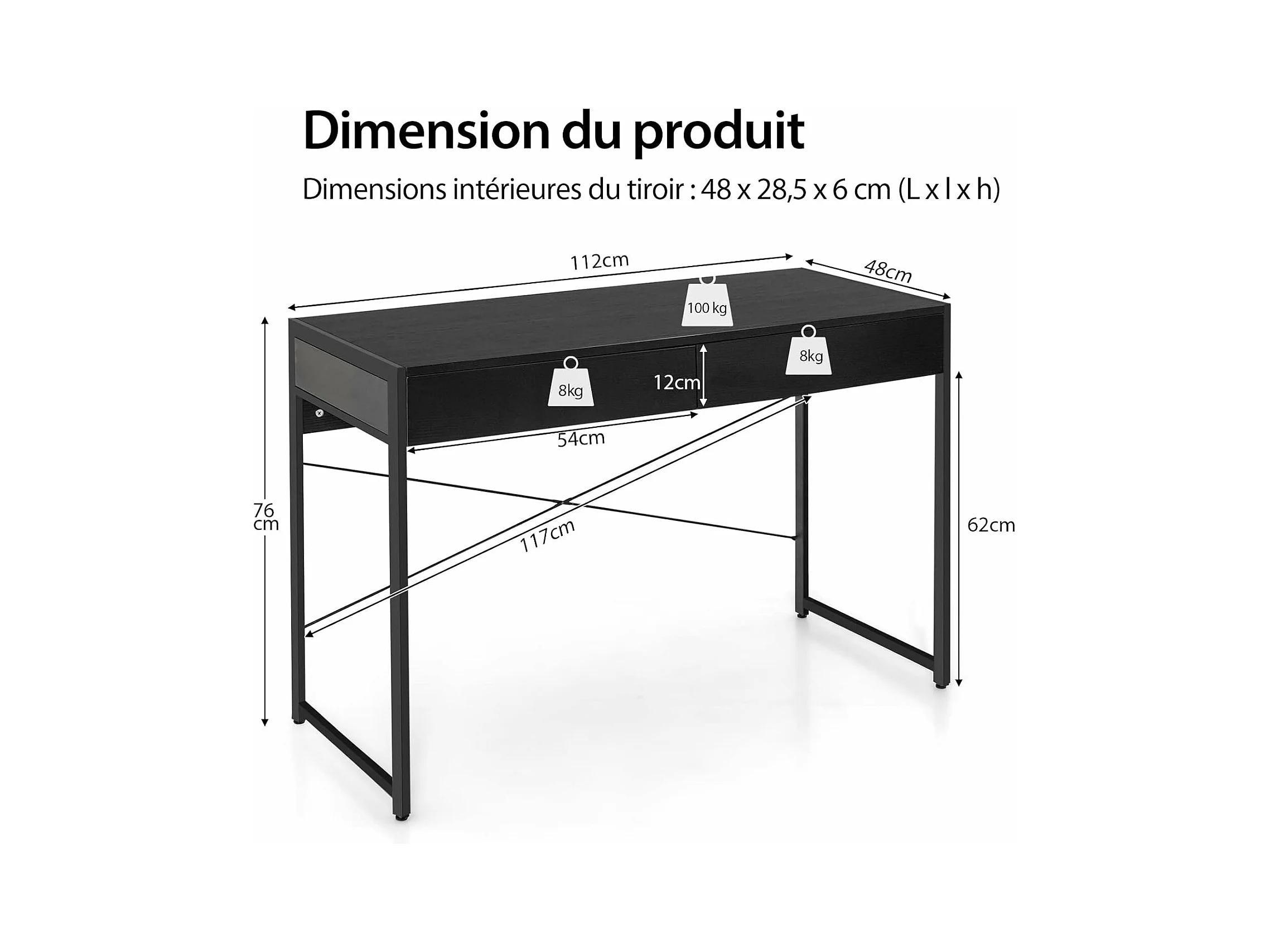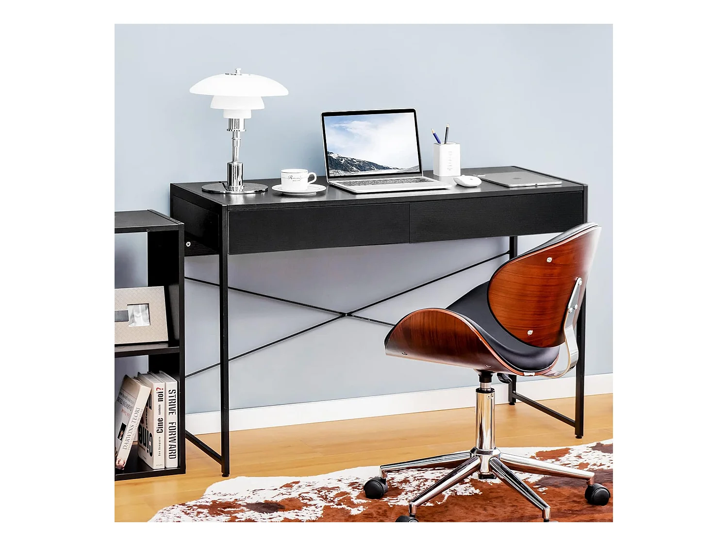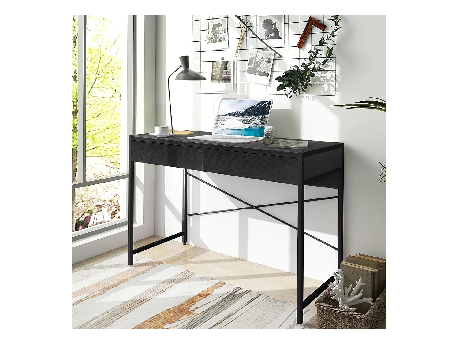 Bureau d'Ordinateur avec 2 Tiroirs et Structure en X, Table Informatique Structure Solide et Durable 112x48x76cm (Noir)