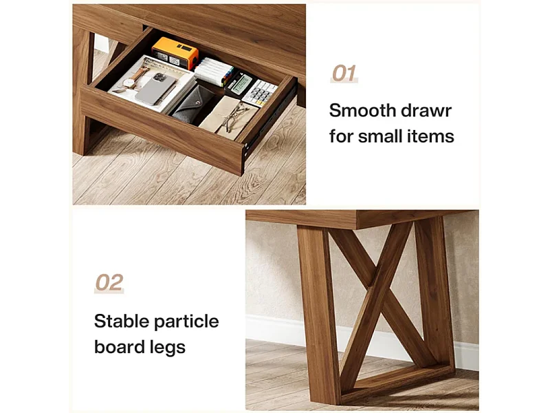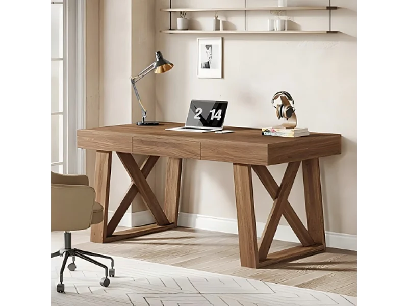 Bureau d'ordinateur de 140 cm,Table Simple avec tiroir de rangment, bureau de direction marron rétro