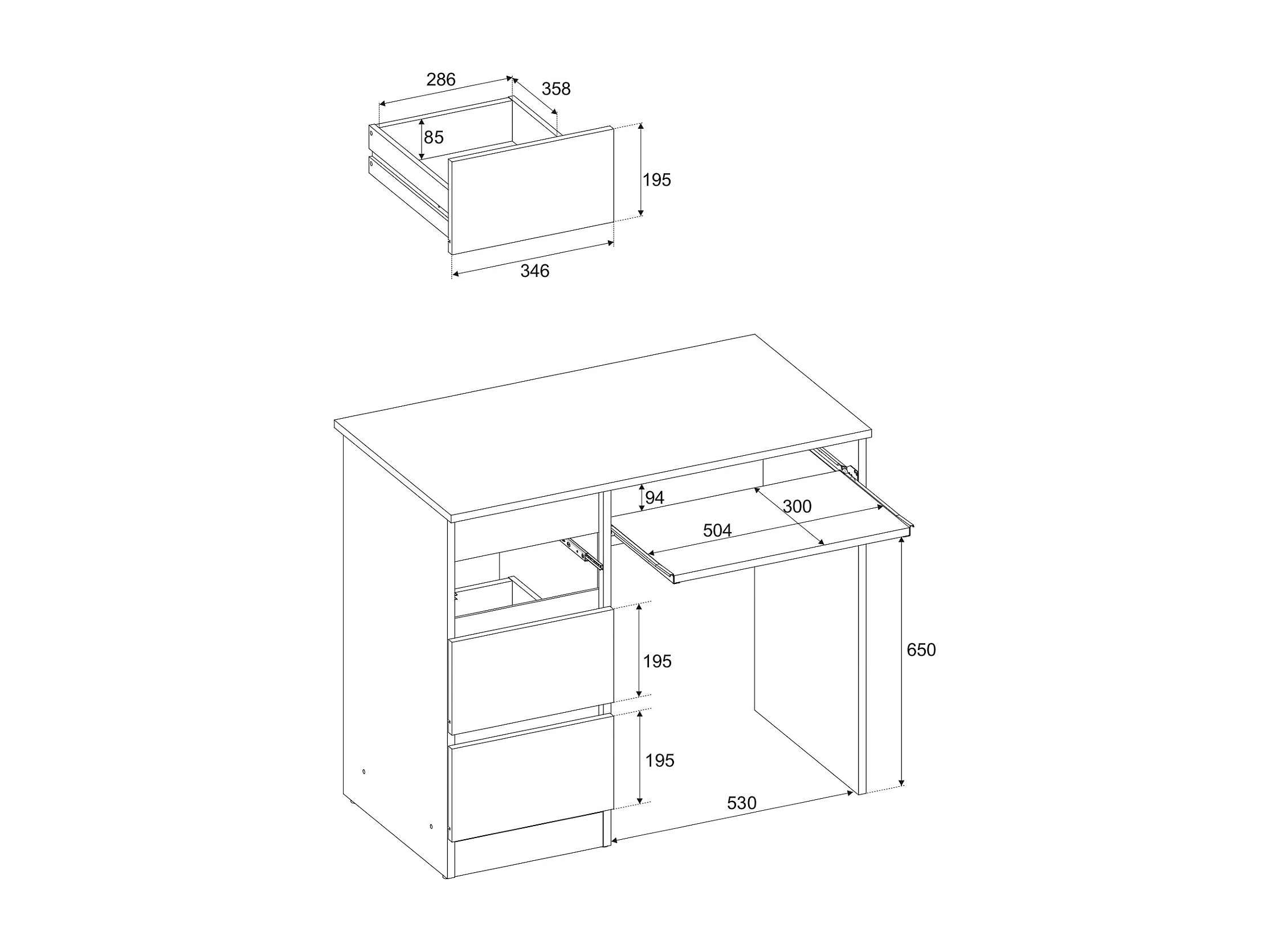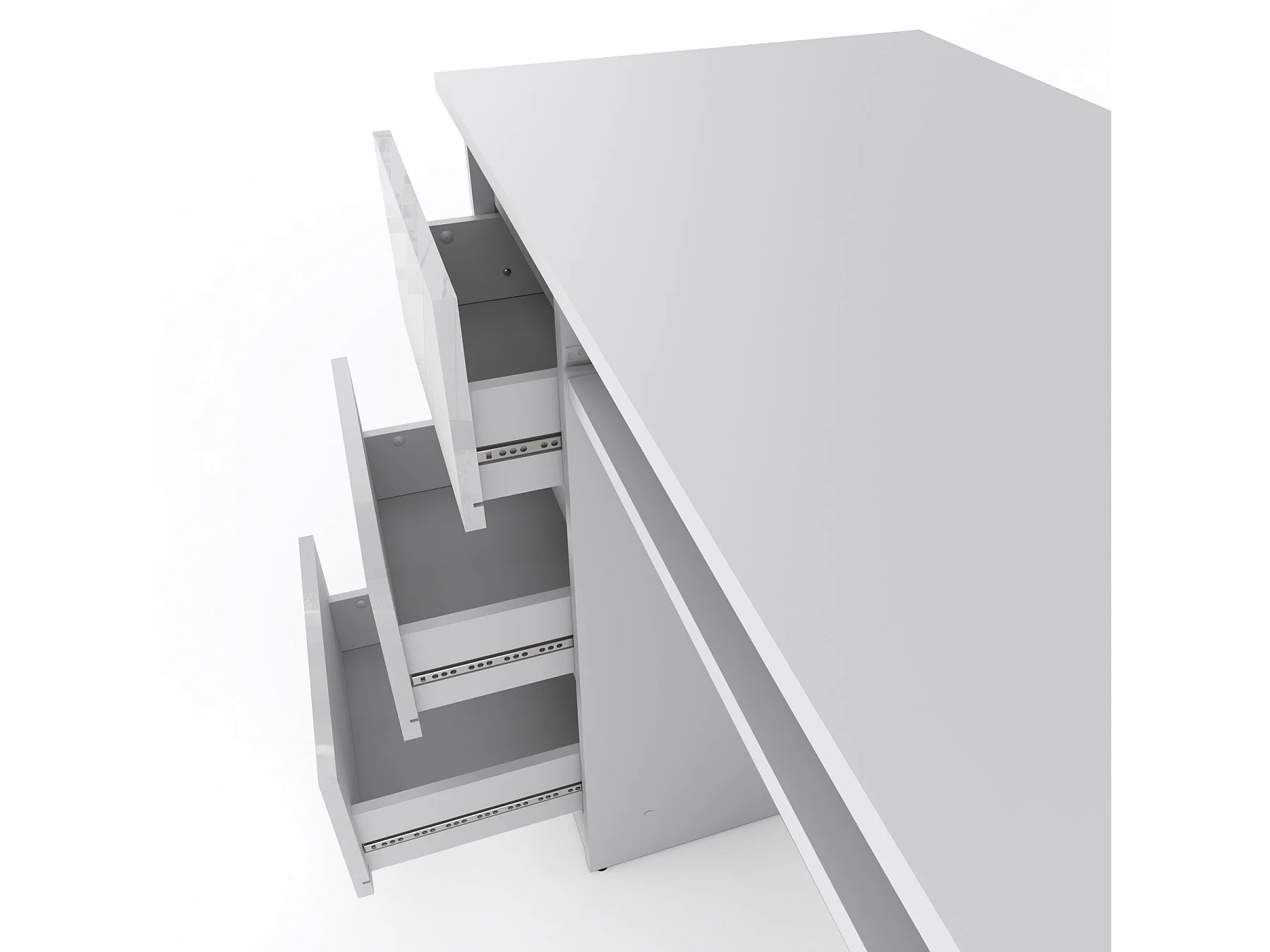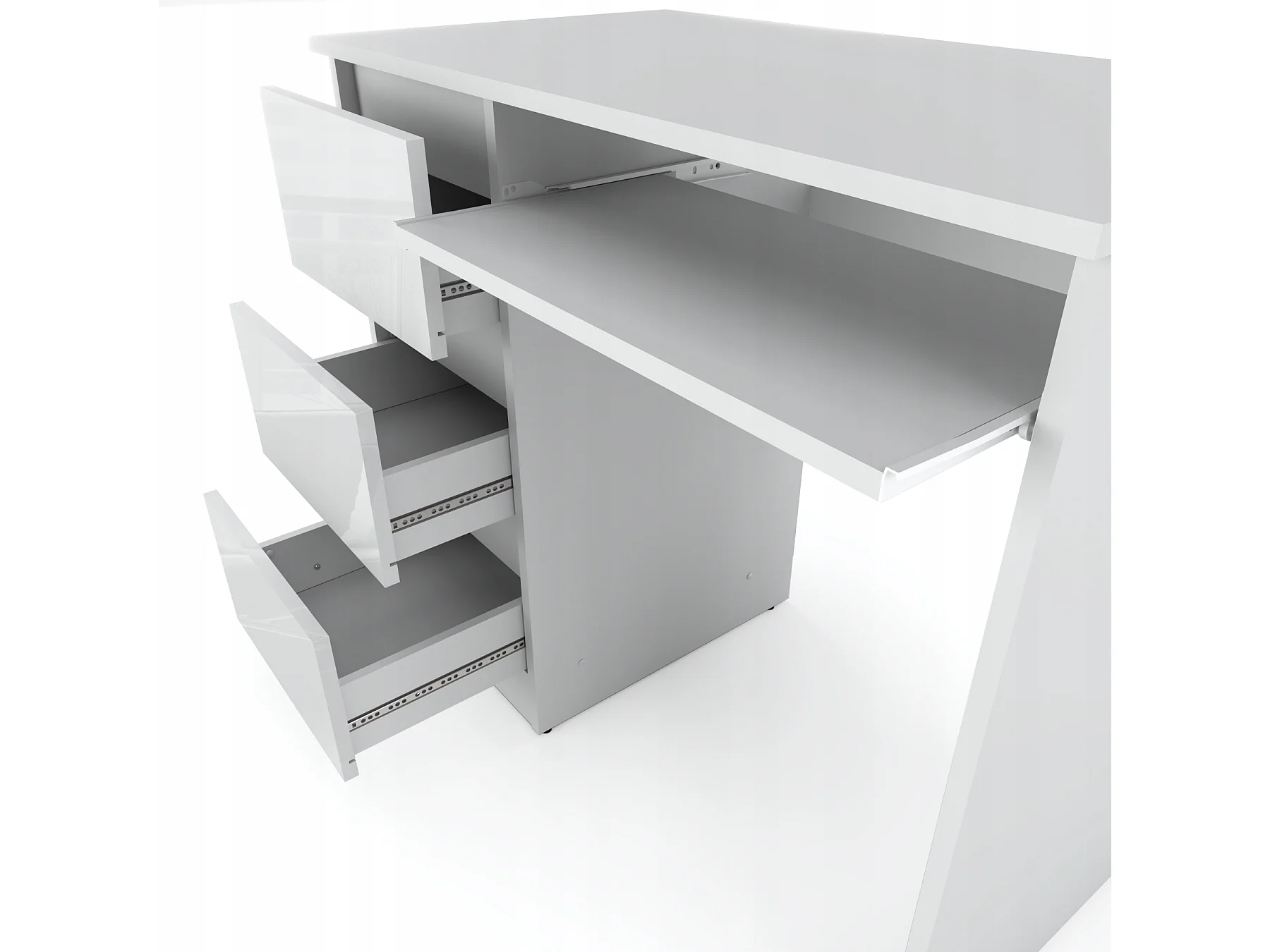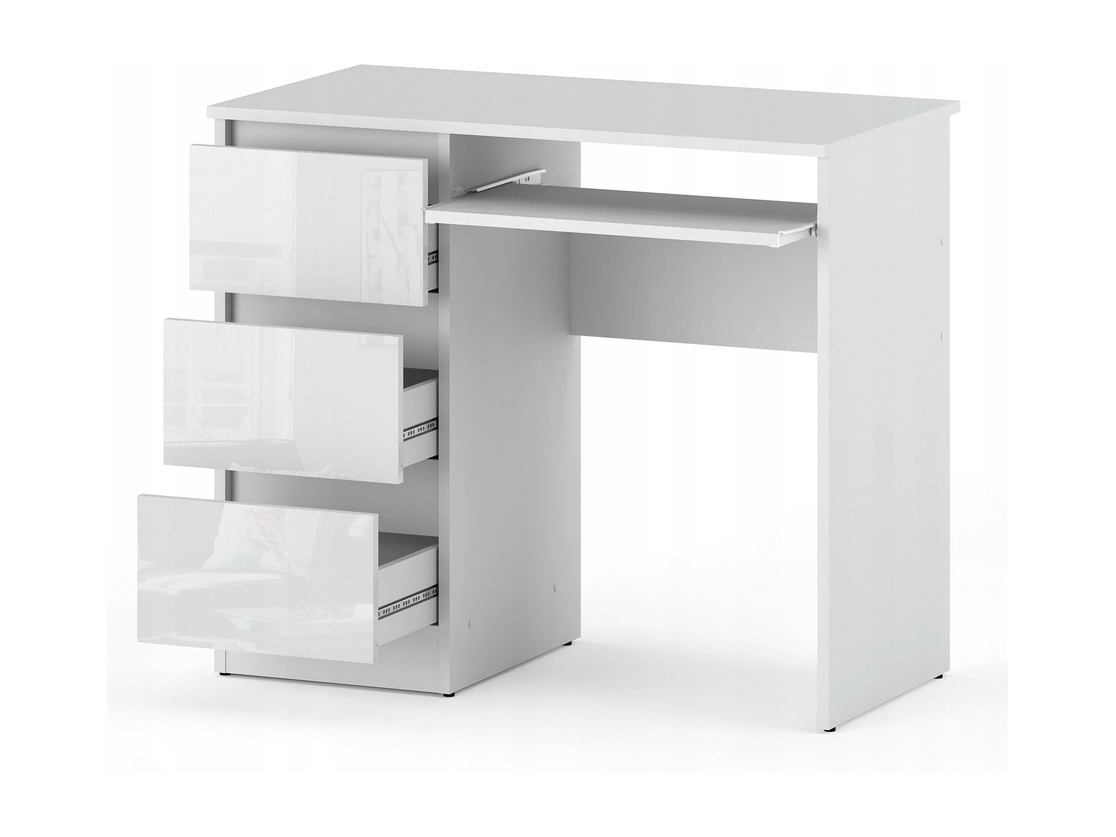 Bureau d’ordinateur -scolaire - gaming à 3 tiroirs – Blanc brillant 90x50x77 cm