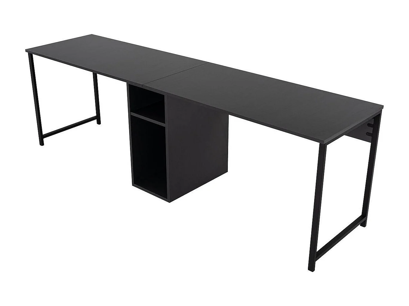 Bureau double avec rangement central gris anthracite, piètement noir 240 cm - Orsa