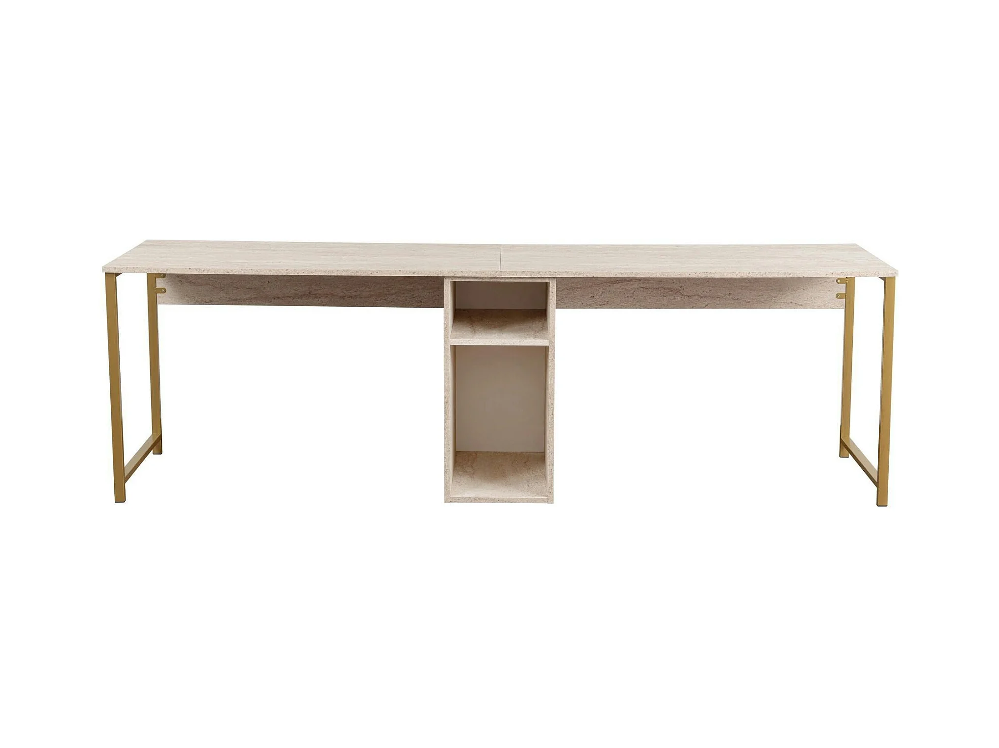 Bureau double avec rangement central - plateau effet travertin MARFA