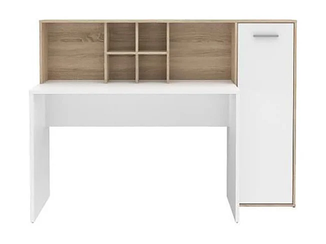 Bureau droit avec rangements décor chêne clair et blanc mat - KEVAN