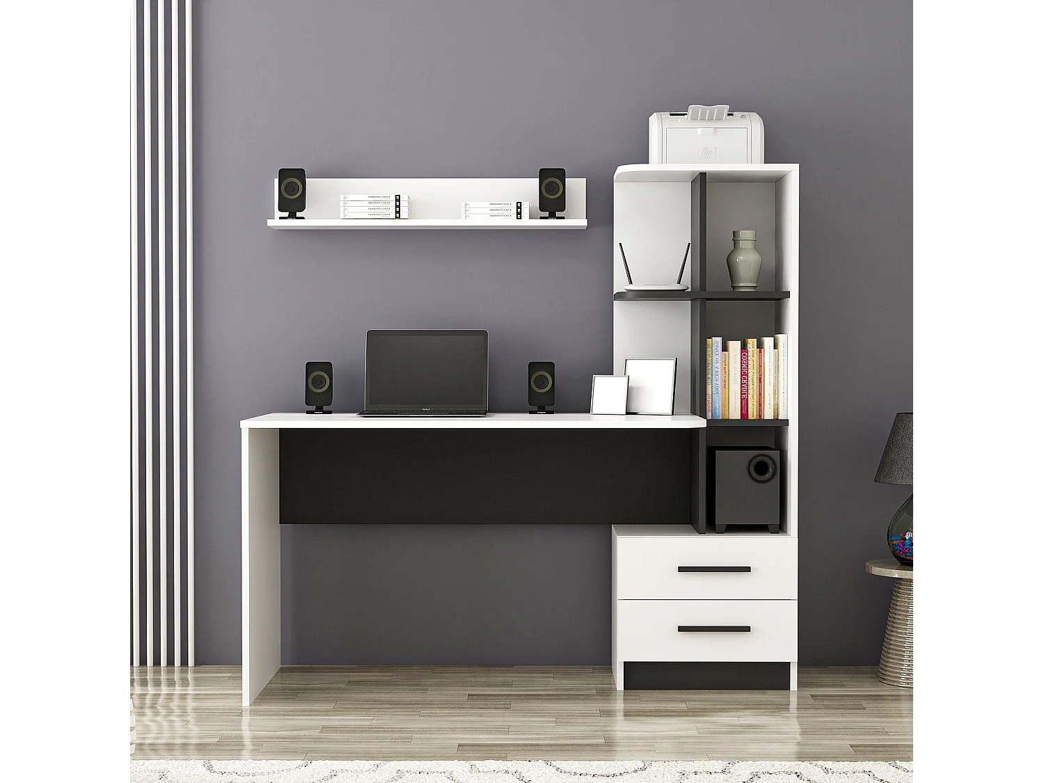 Bureau en bois "Alaska" - 60 x 120 x 74 cm - Blanc, Noir