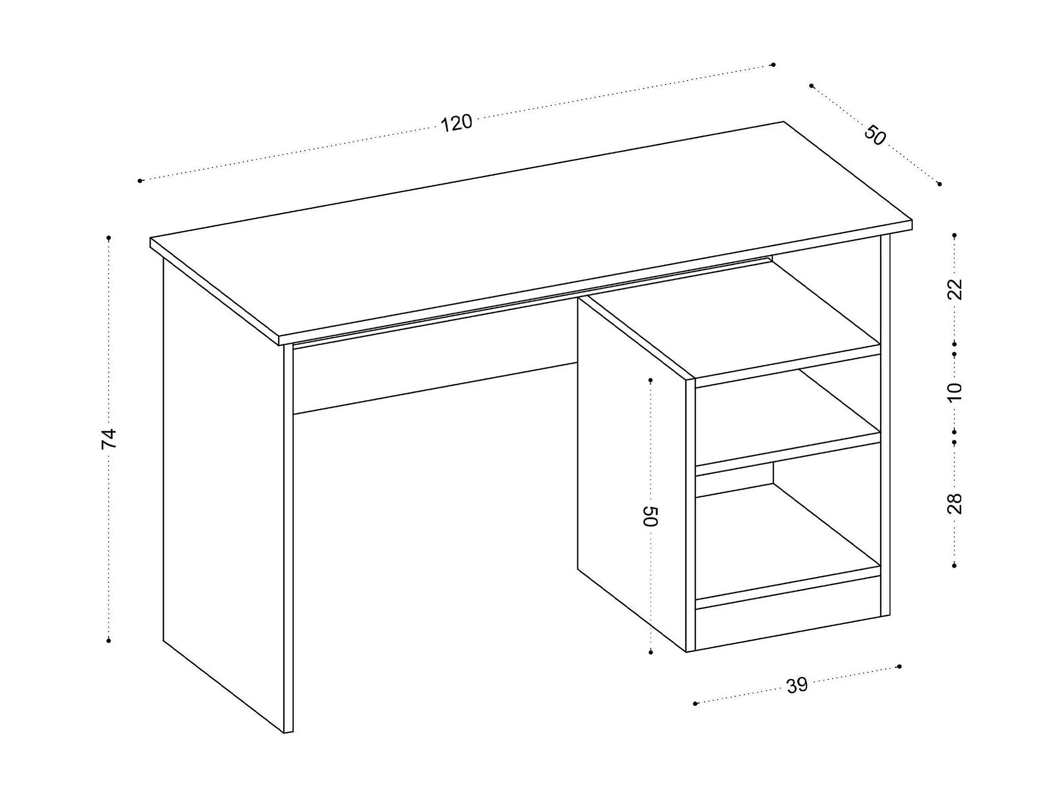 Bureau en bois "Alaska" - 60 x 120 x 74 cm - Blanc, Noir
