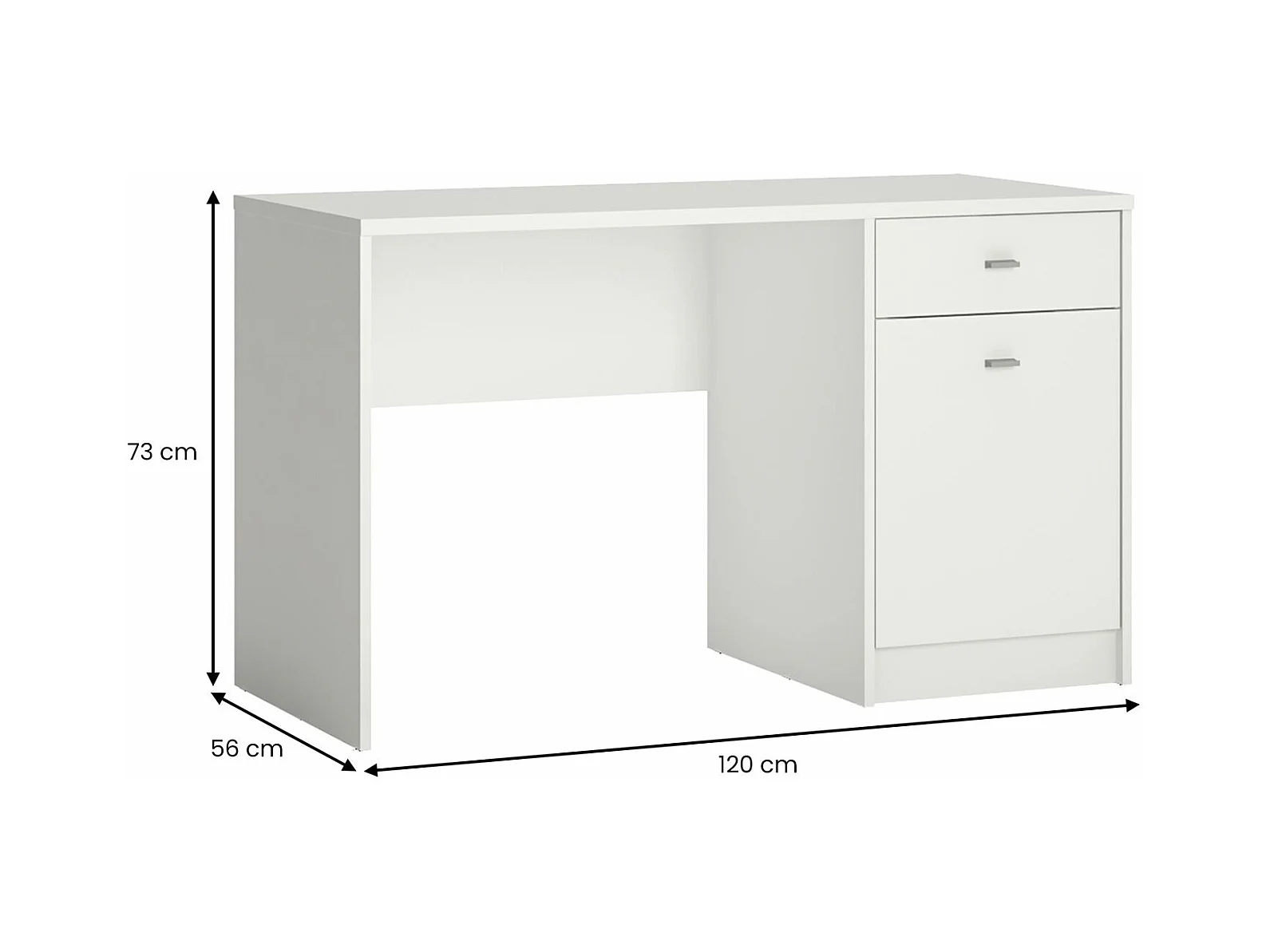 Bureau en bois BARZA 1 porte 1 tiroir 120 x 73 x 56 cm Blanc, Avec espace de Rangement