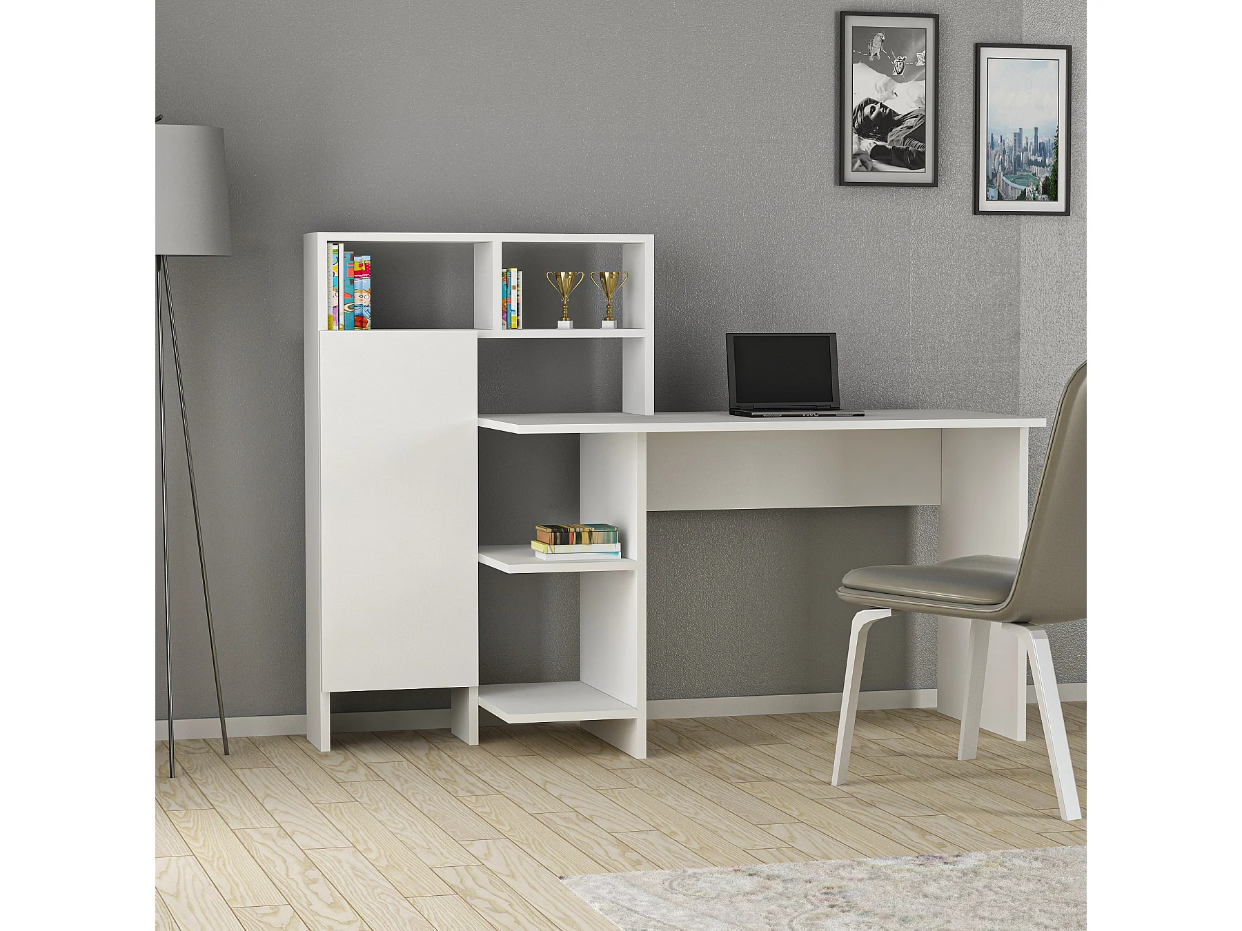 Bureau en bois "Bugra" - 135 x 60 x 111 cm - Blanc