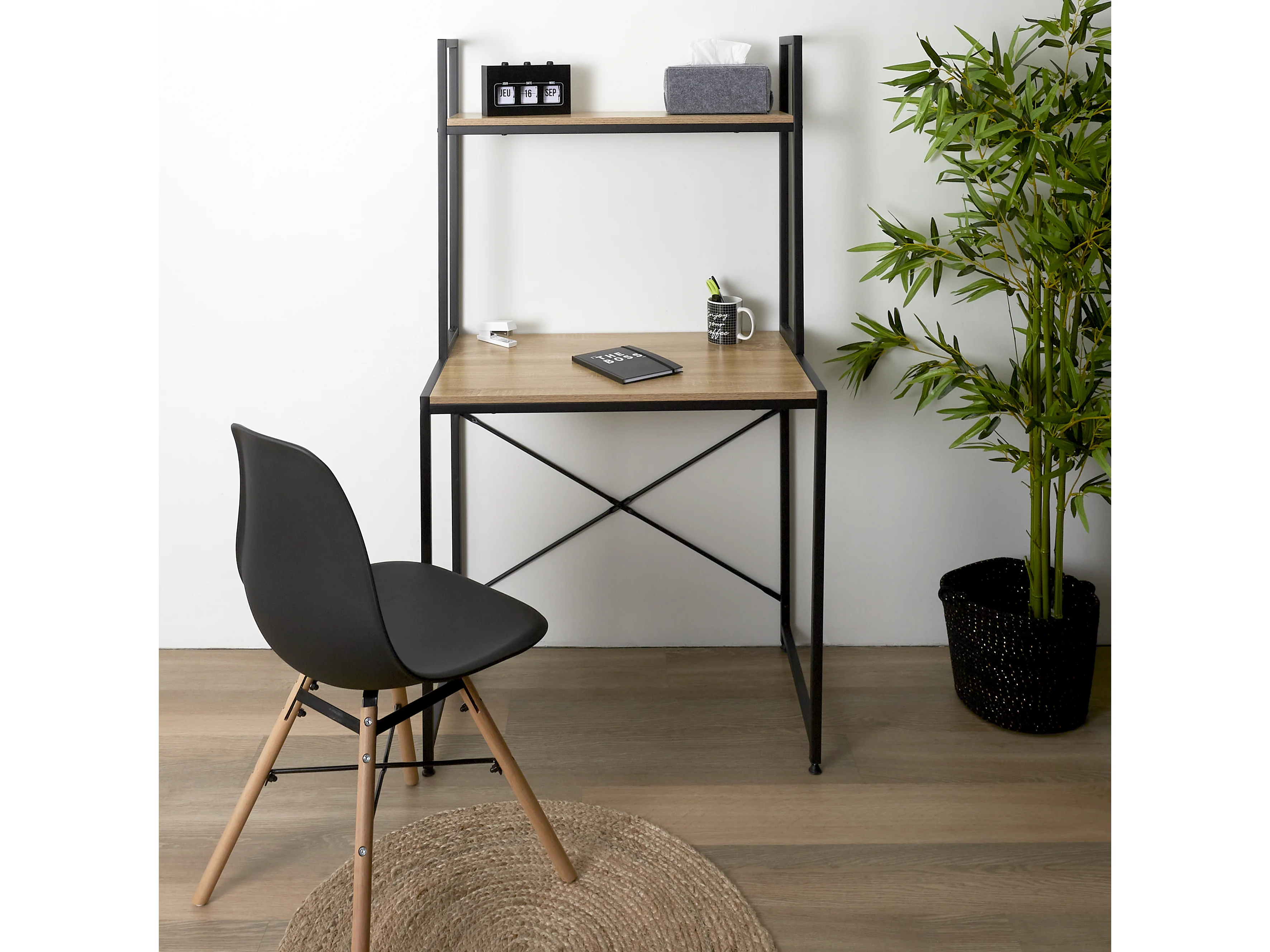 Bureau Loka Plateau Effet Bois Clair Marron, Noir