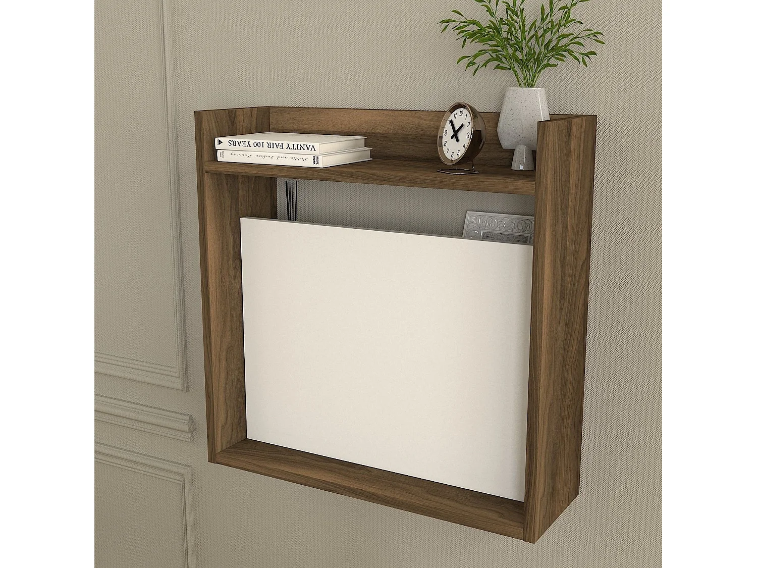 Bureau en bois "Laptop" - 19 x 60 x 60 cm - Blanc, Noyer