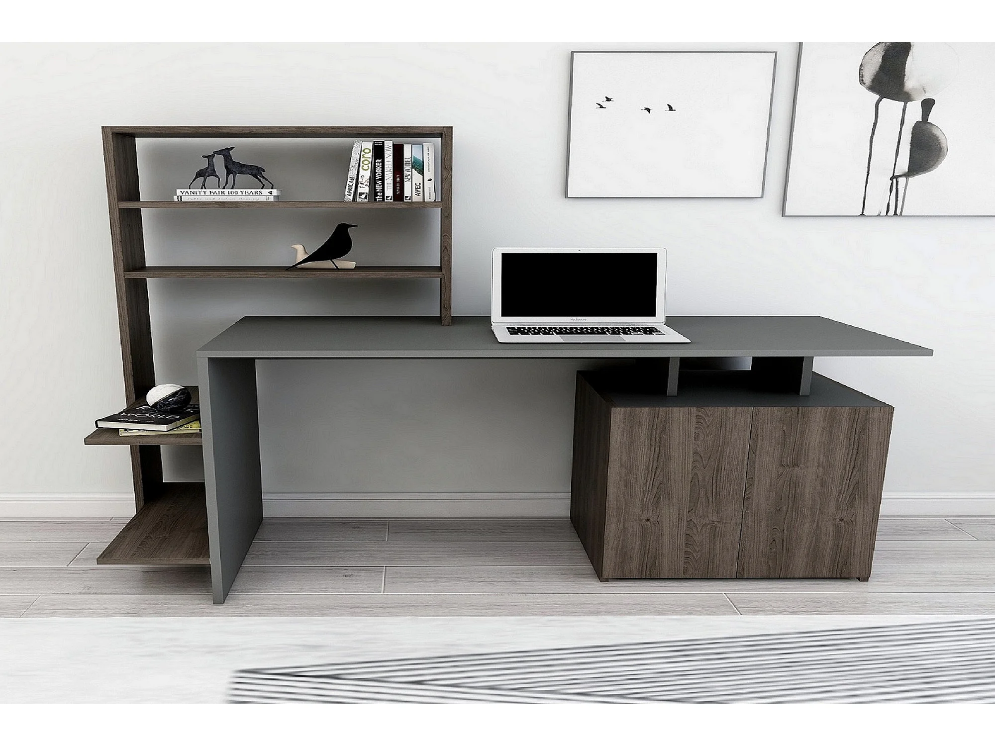 Bureau en bois "Melis " - 146 x 60 x 128 cm - Noyer Anthracite