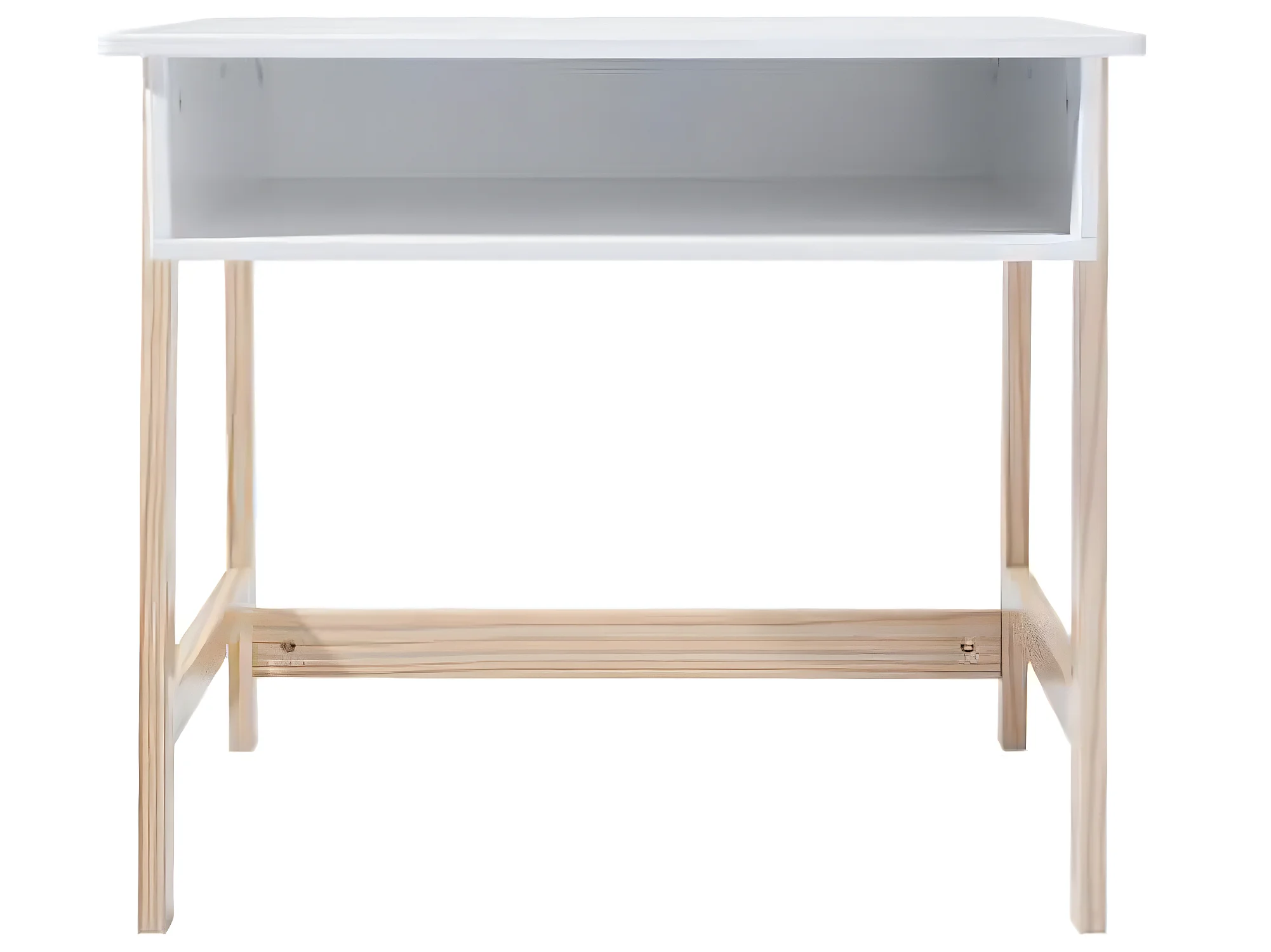 Bureau en MDF et pin coloris naturel et blanc - Dim : L 58 x l 52 x H 46 cm