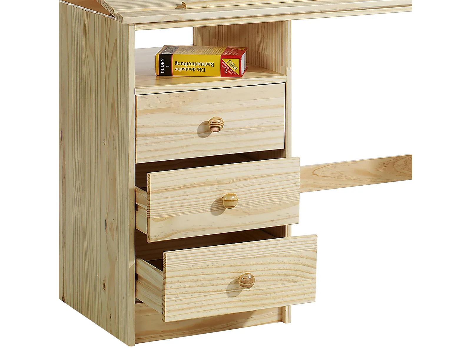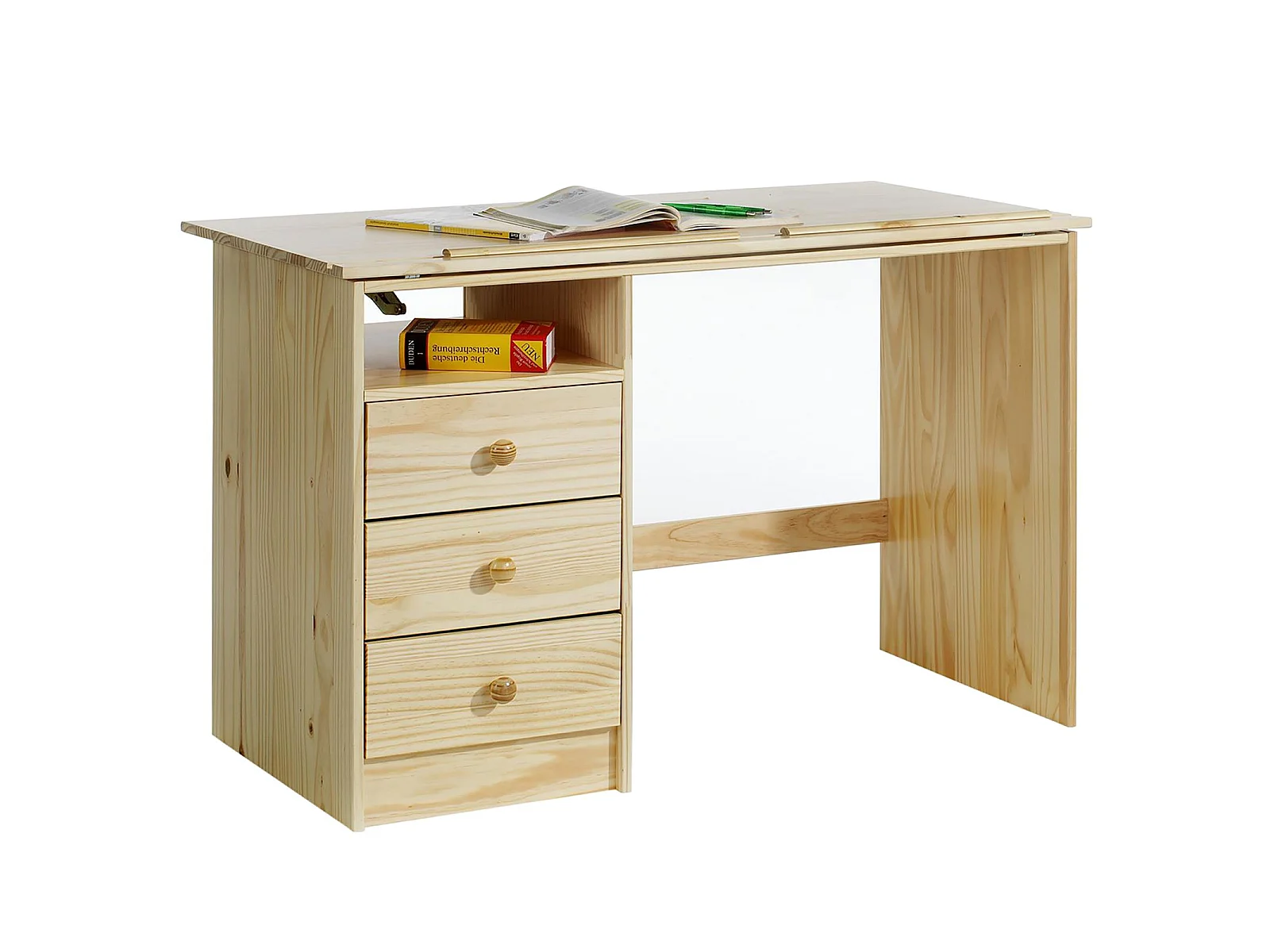 Bureau enfant écolier junior KEVIN pupitre inclinable avec 3 tiroirs 1 casier en pin massif vernis naturel