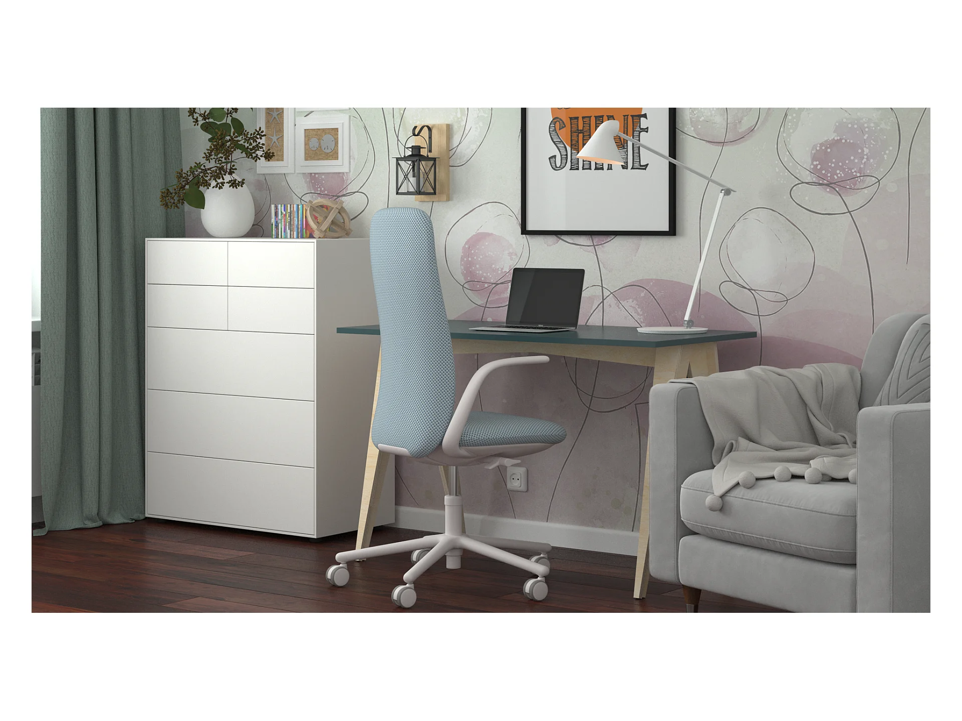 Bureau enfant en pin massif 120x60 bleu