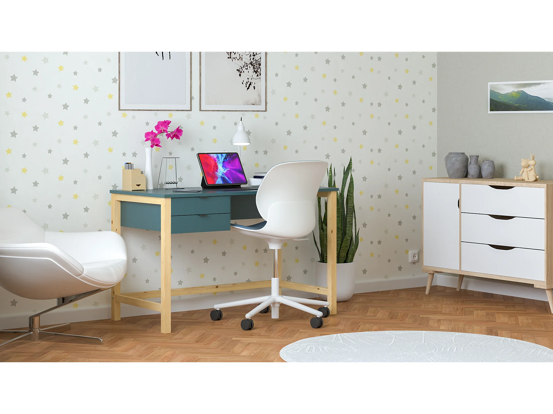 Bureau enfant en pin massif 120x60 bleu