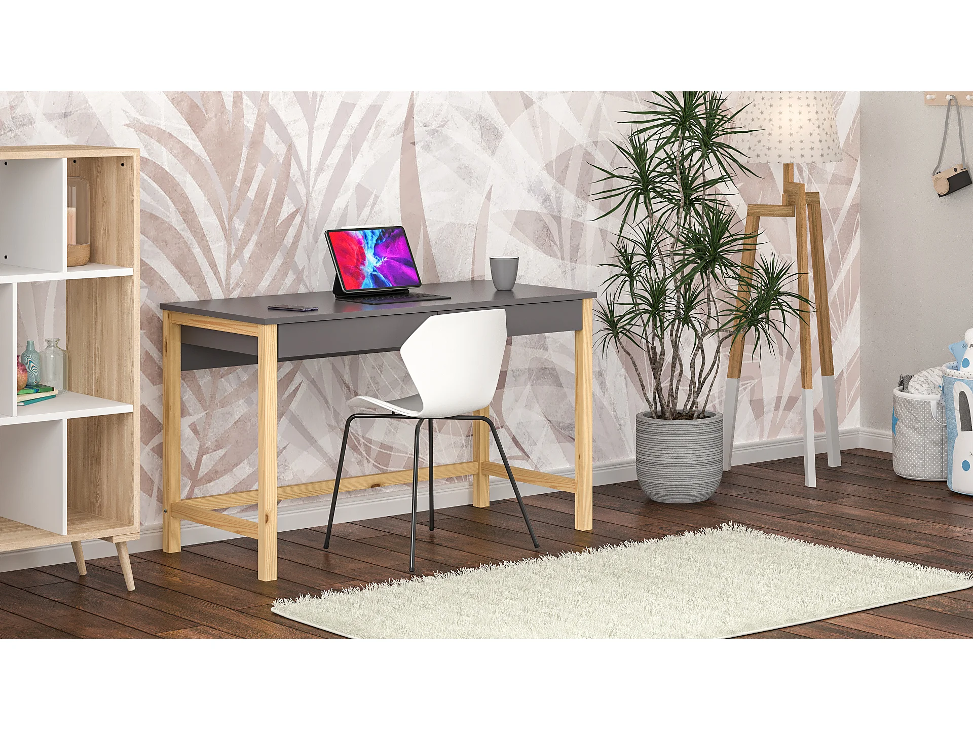 Bureau enfant en pin massif 120x60 gris foncé