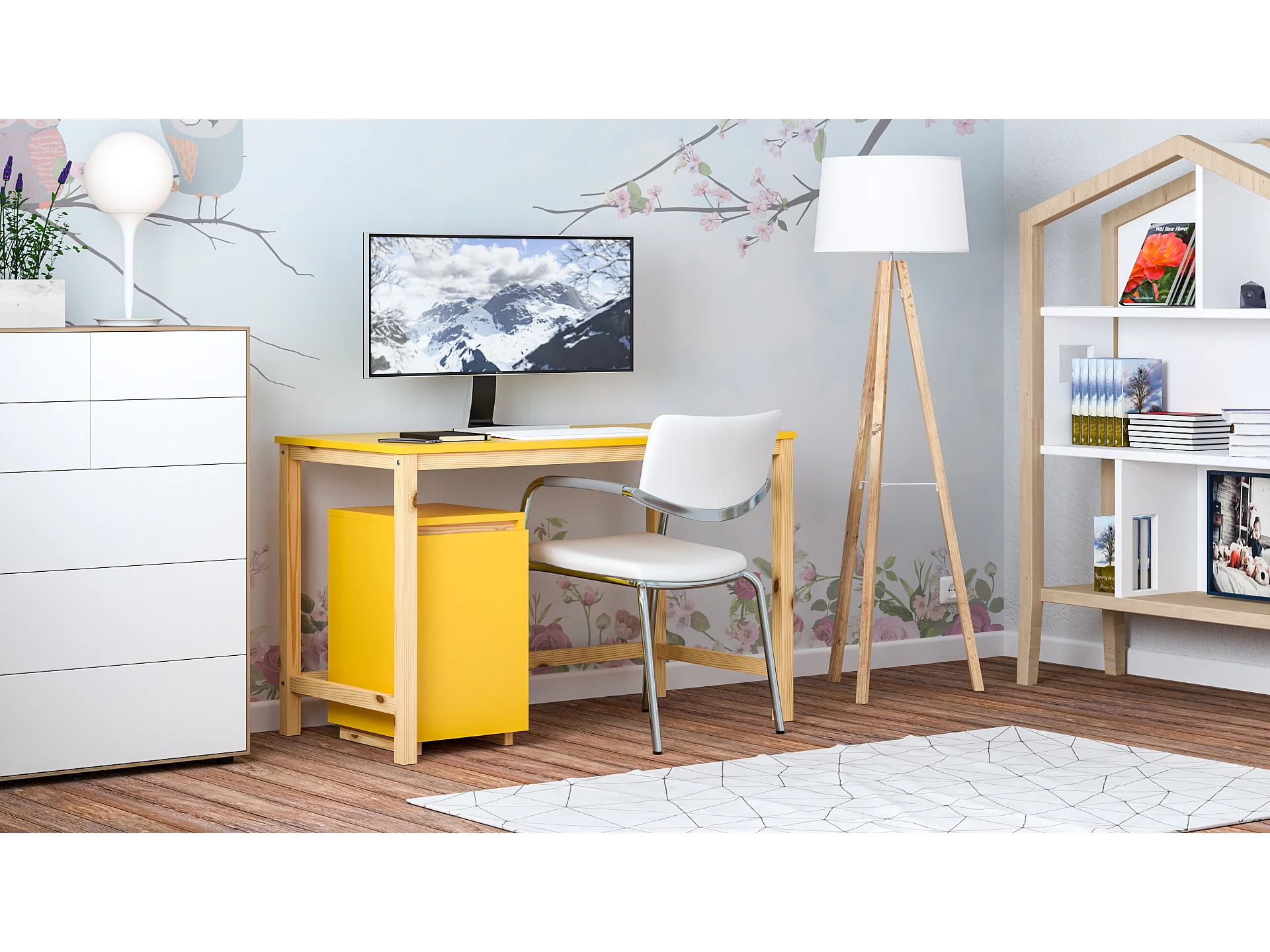 Bureau enfant en pin massif 120x60 jaune