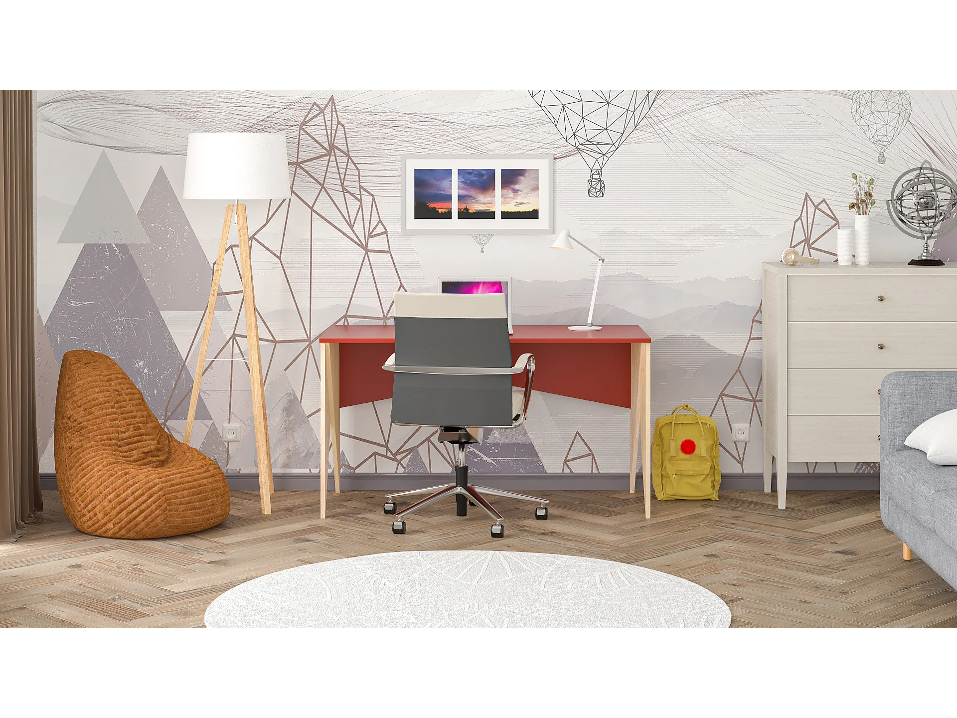 Bureau enfant en pin massif 120x60 rouge