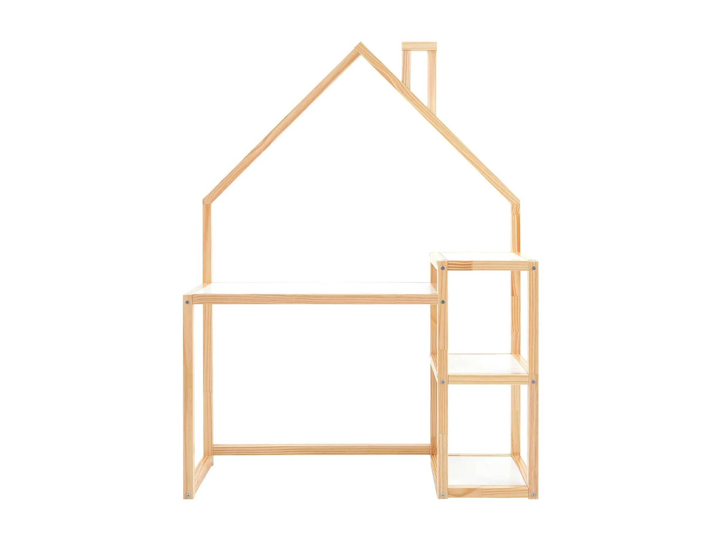 Bureau enfant NIVIA en forme de maison en pin massif, bureau chambre enfant bois, en pin massif coloris blanc/naturel