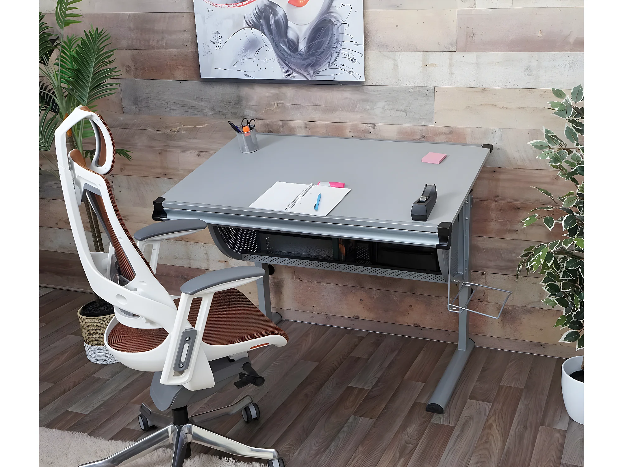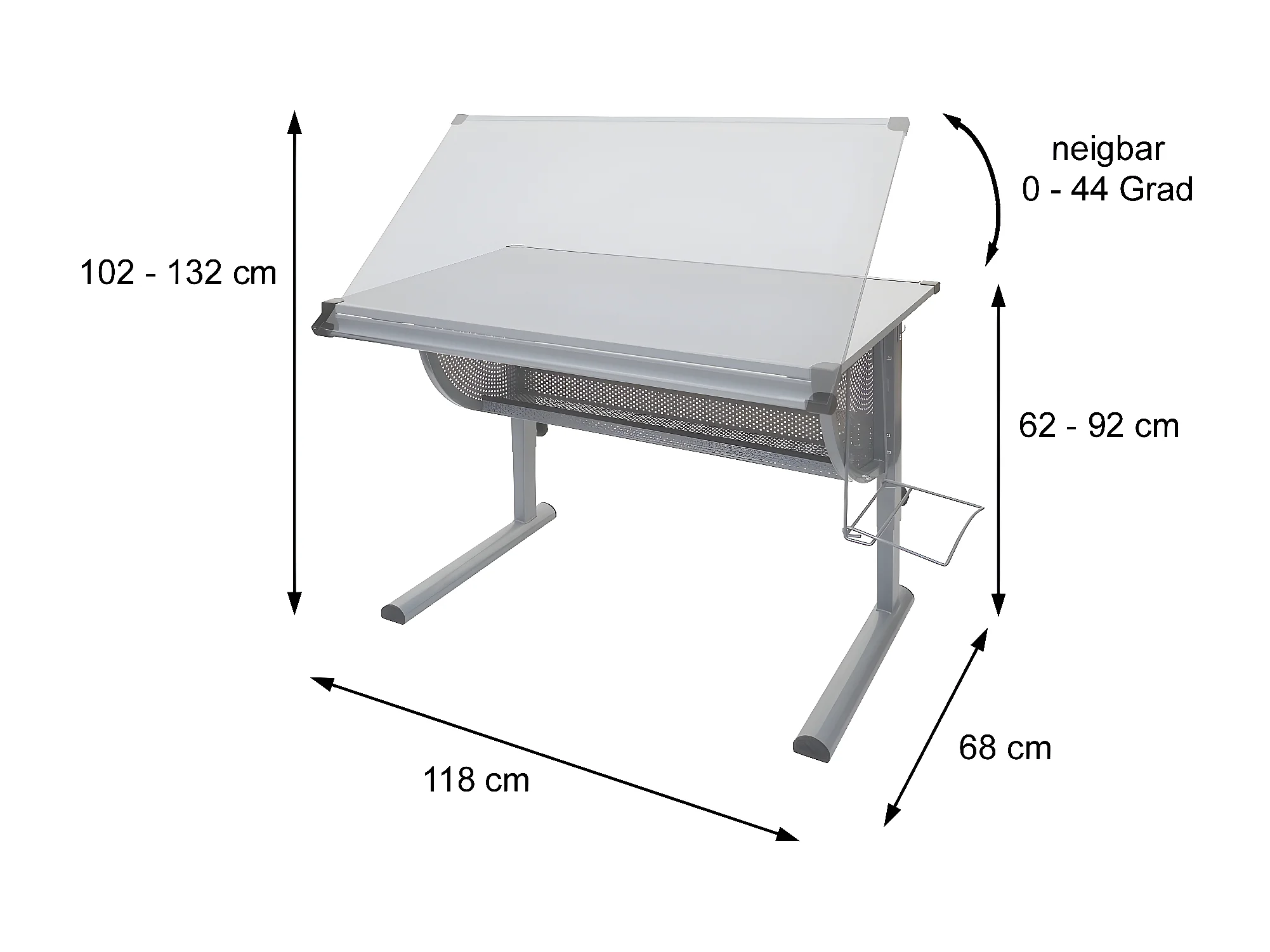 Bureau enfant Oxford, plateau inclinable, hauteur réglable, blanc