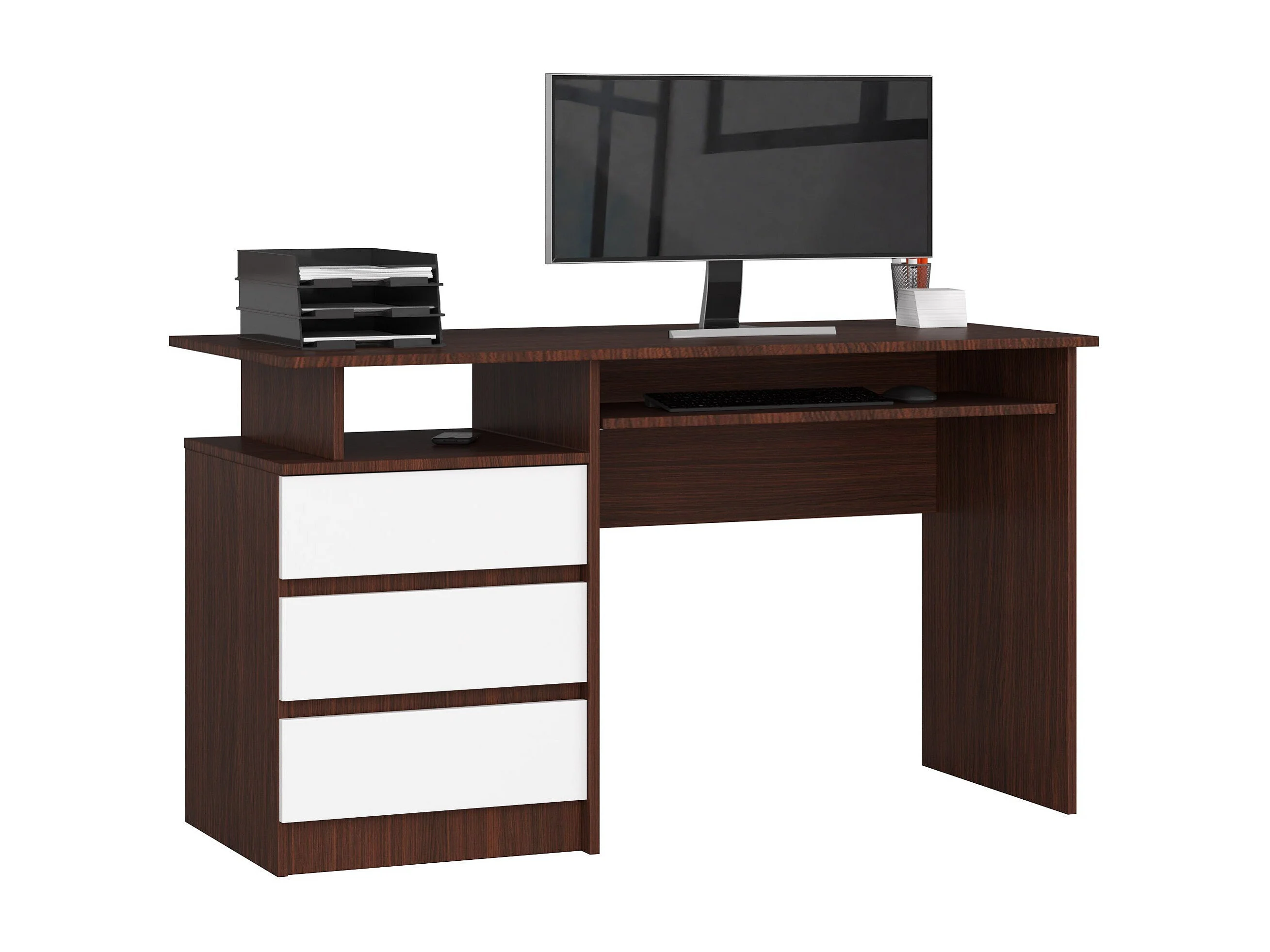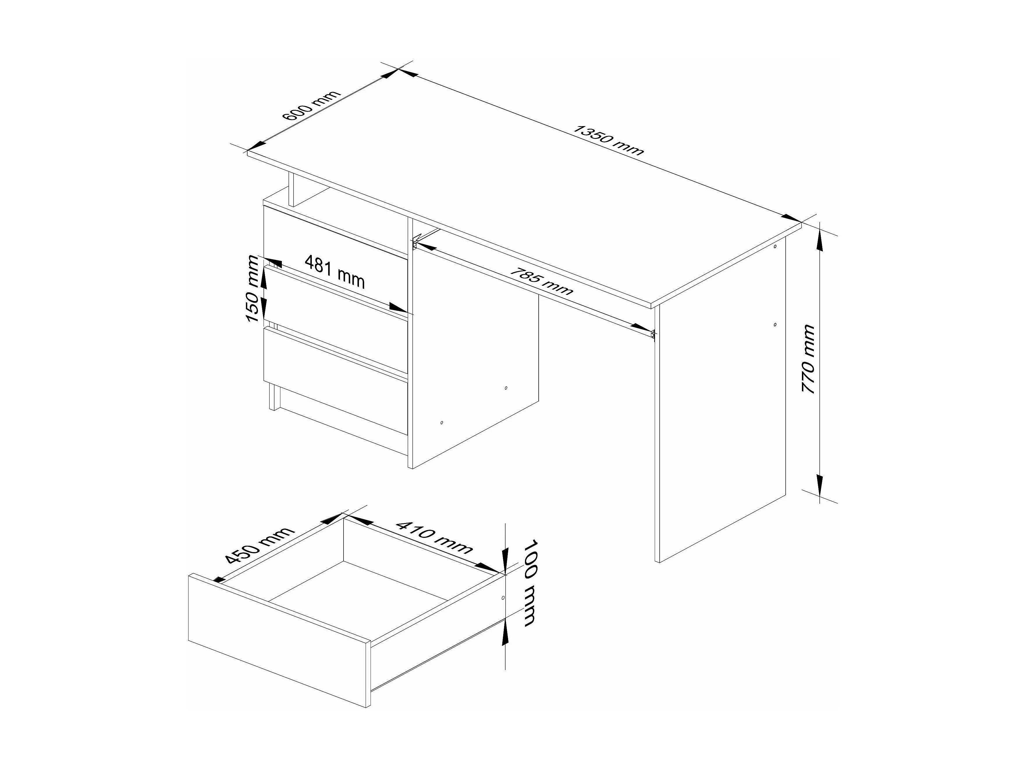 bureau erino bois mdf gauche 4 tiroirs facade blanc 90x50x77 cm