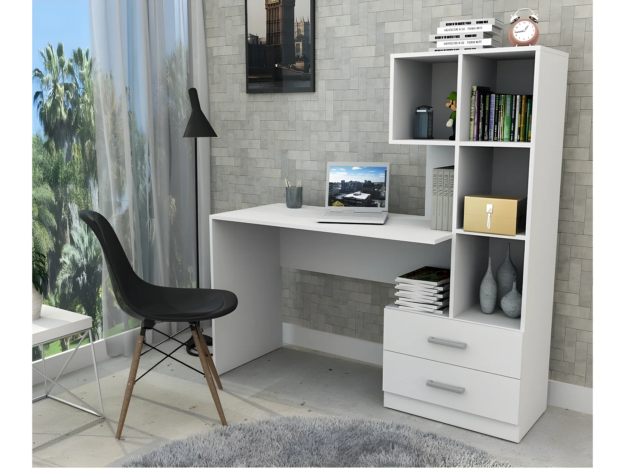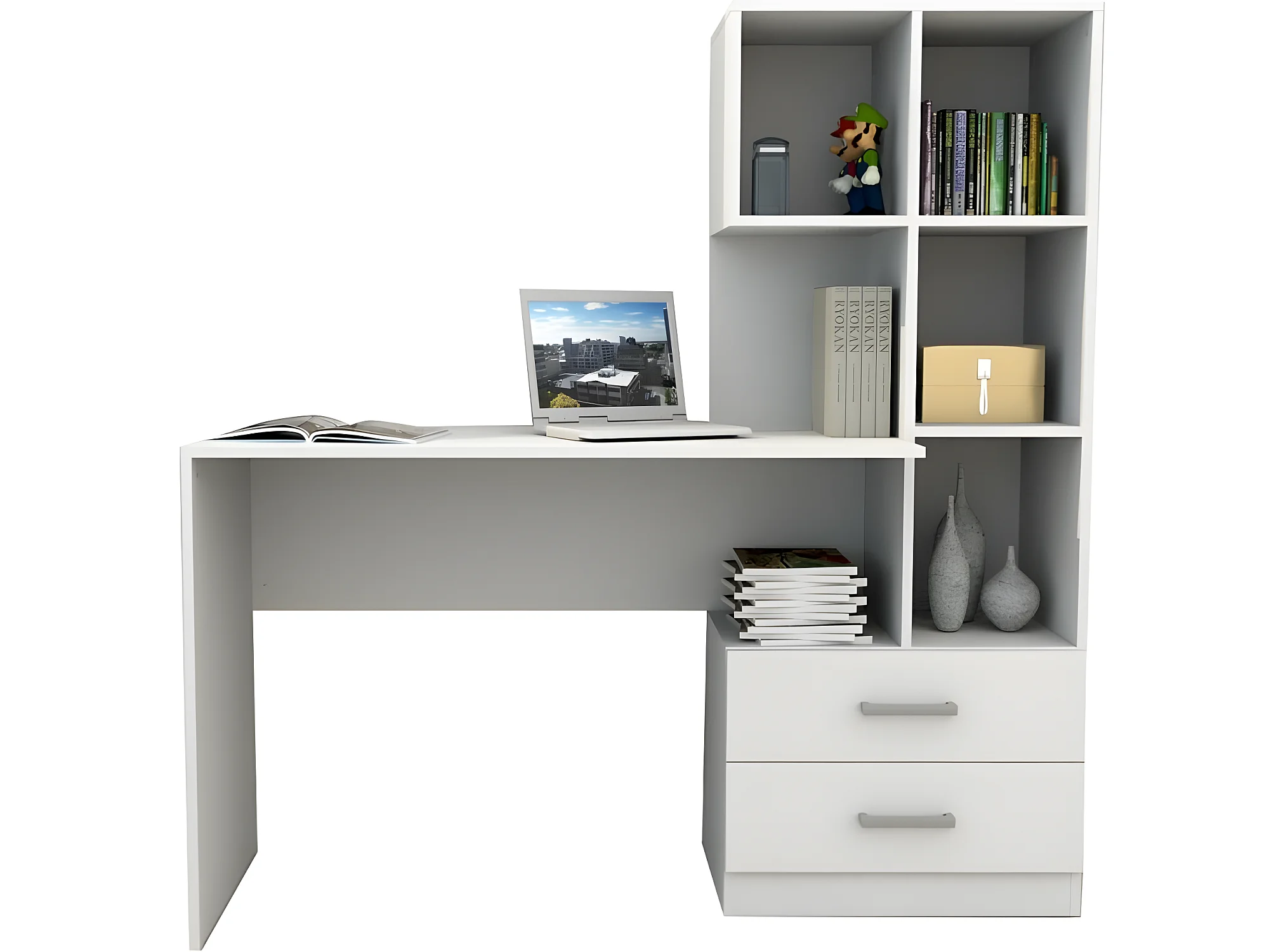 Bureau et Bibliothèque Intégrée 5 Niches Blancs