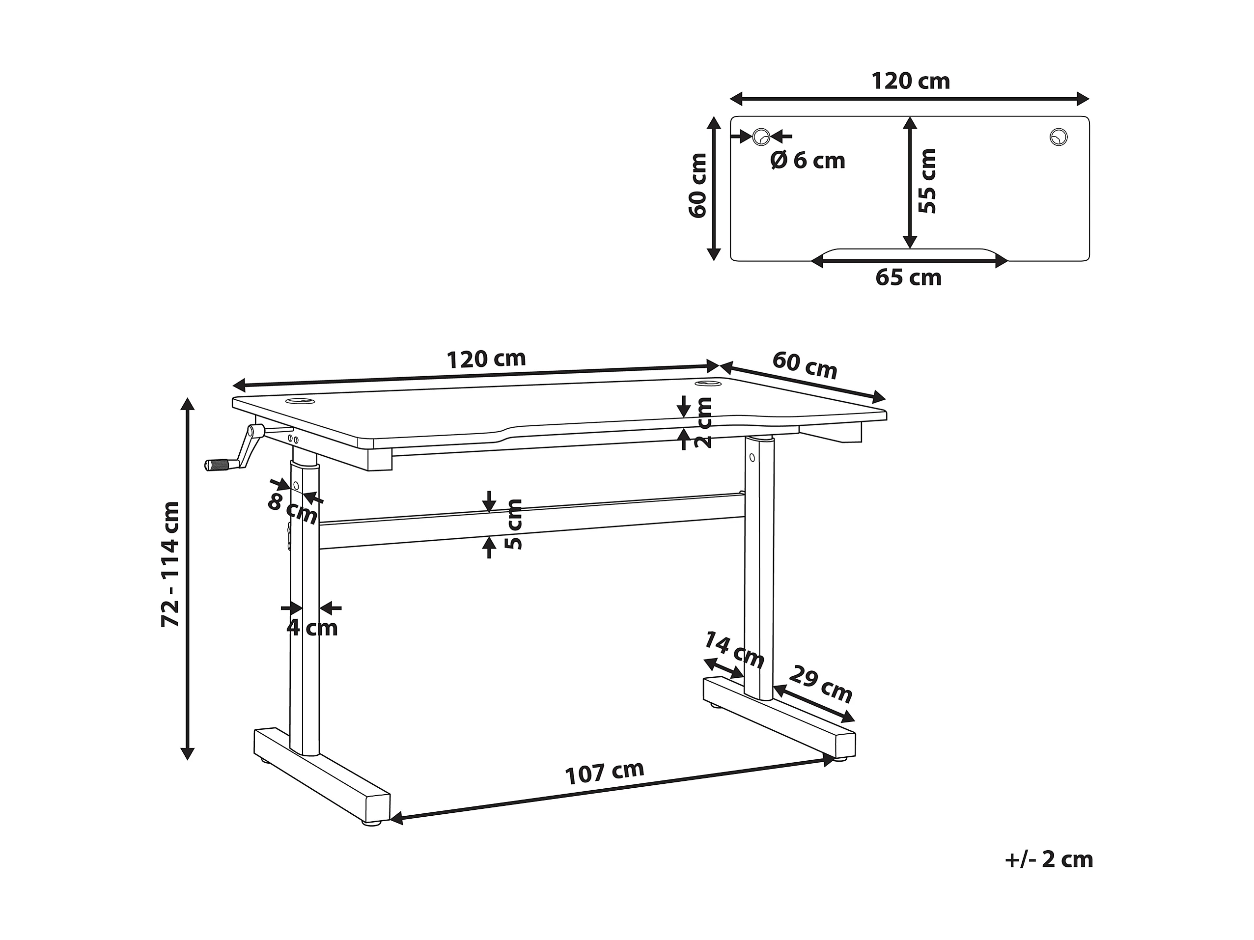 Bureau gaming réglable manuellement DURBIN Noir 120 cm 60 cm LED RVB