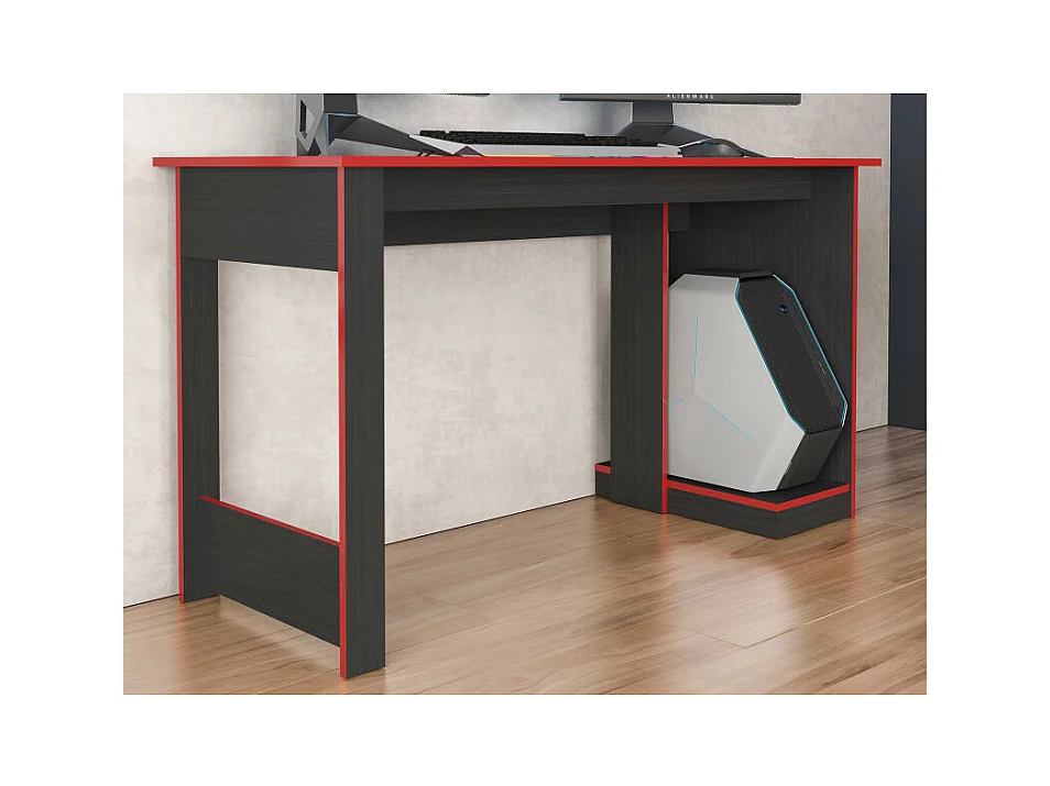 Bureau Gamer Noir Chants Rouges 1 Caisson UC L 136 H 75 P 54 cm