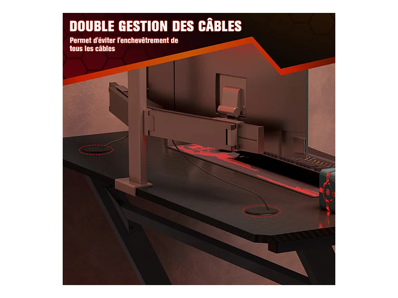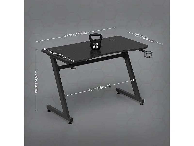 Bureau gaming plateau effet fibre de carbone dim. 120L x 65l cm noir