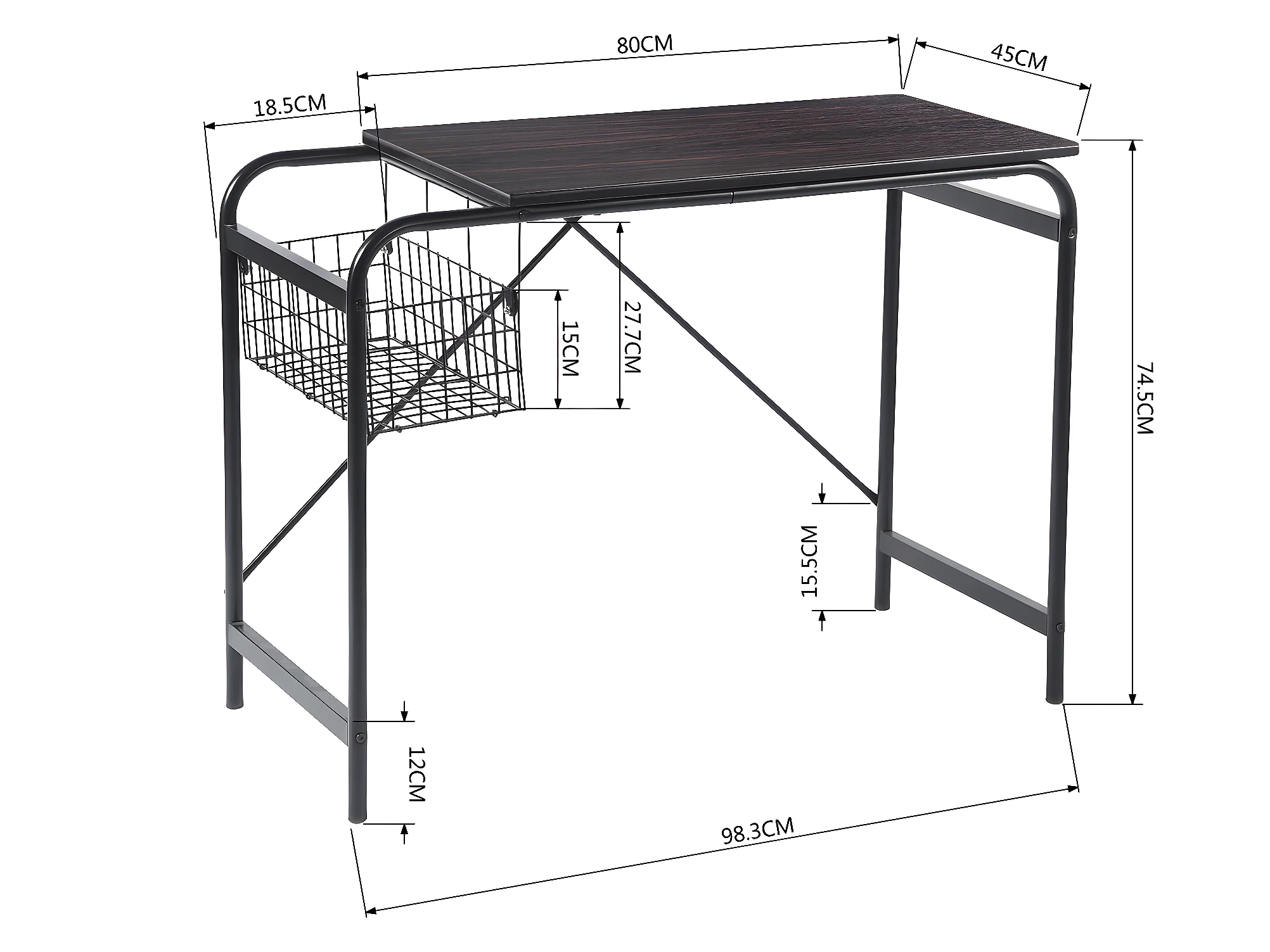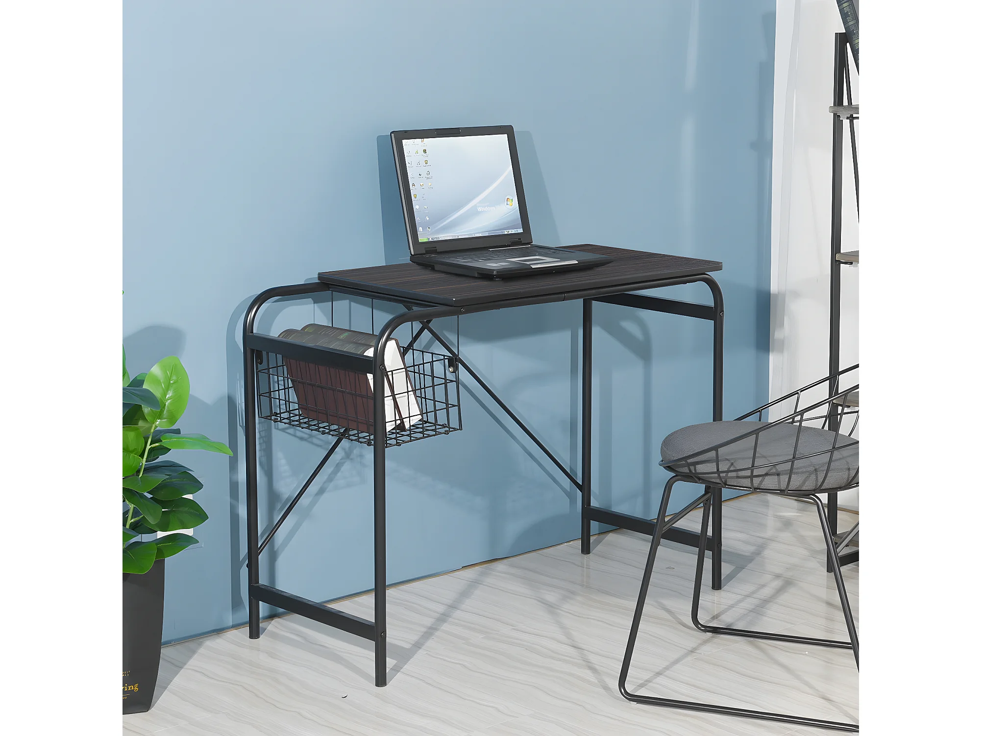 Bureau hêtre bois 1 panier métallique noir noyer