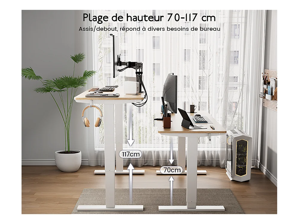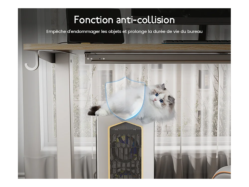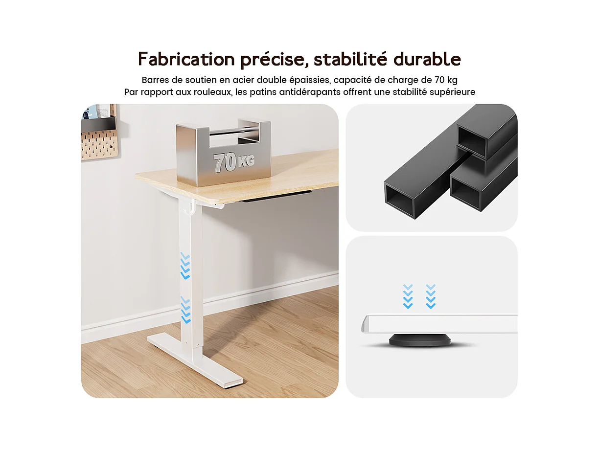 Bureau HOMAVO électrique réglable 160x80 cm – Fonction mémoire & anti-collision – Idéal télétravail – Finition bois naturel