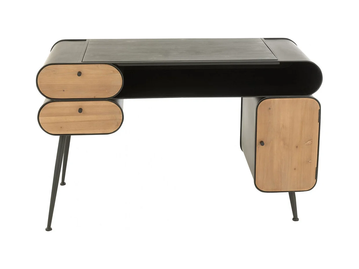 Bureau industriel en bois et métal noir 2 - FORGE