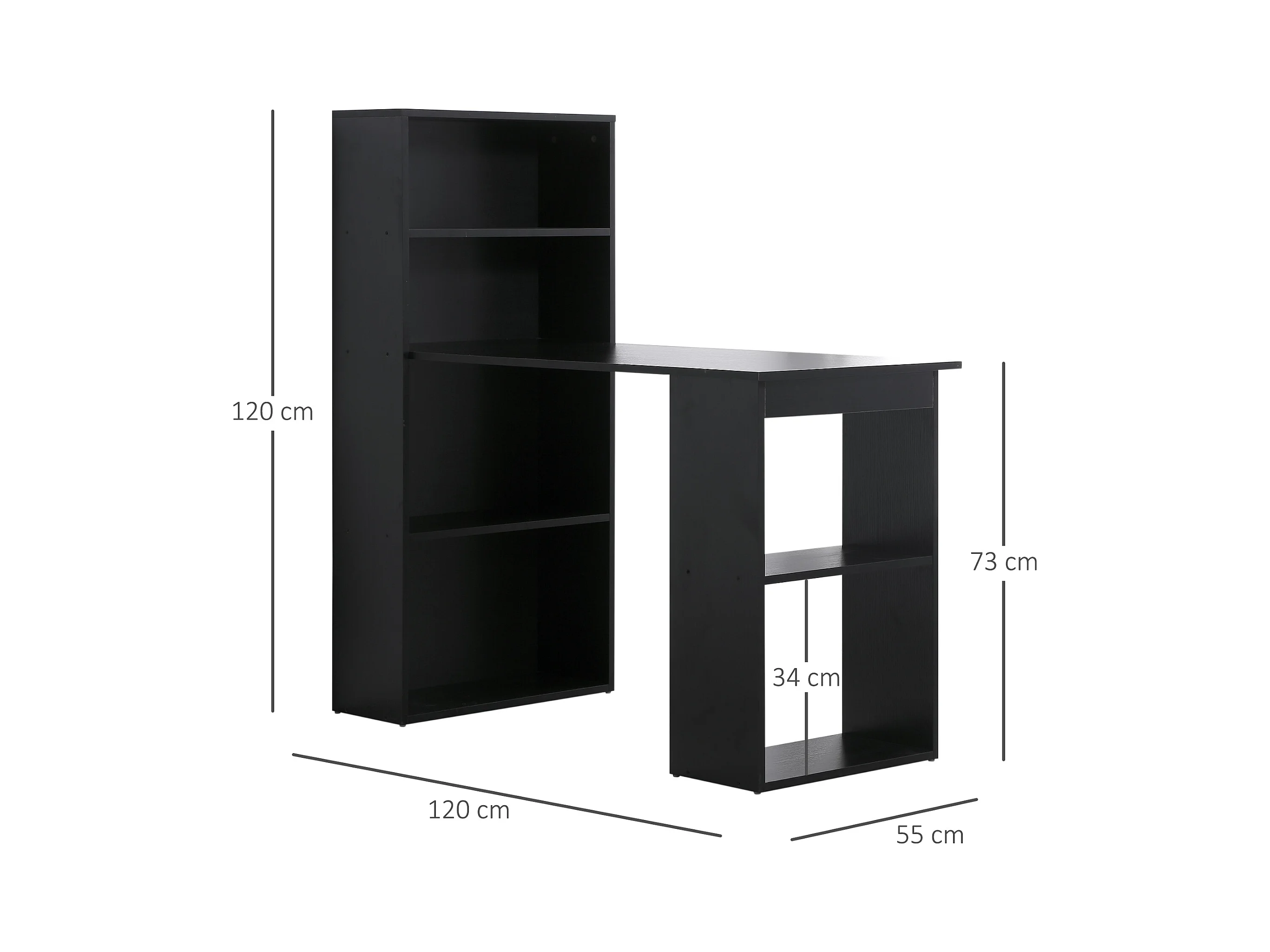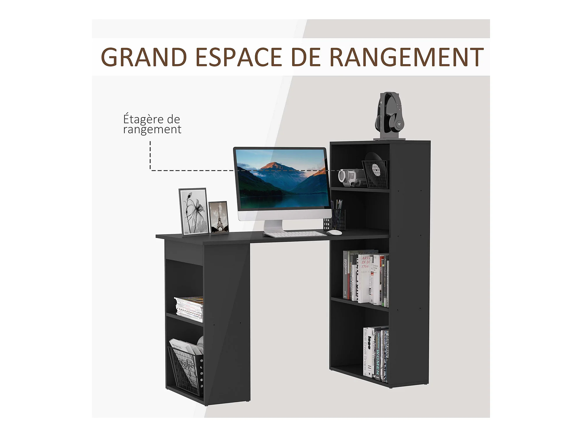 Bureau informatique 120L x 55l x 120H cm bibliothèque adjacente multi-rangements noir