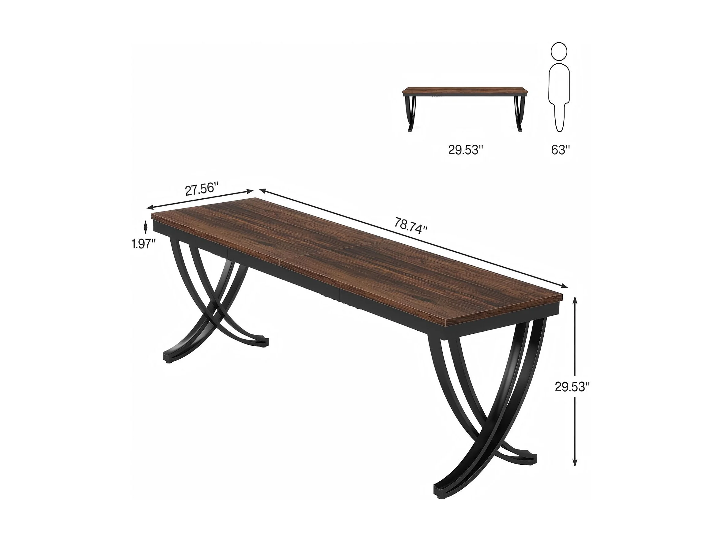 Bureau Informatique 200x70cm avec Large Plateau, Table pour Ordinateur Portable, Bureau Domicile Marron Rustique, Table Étude