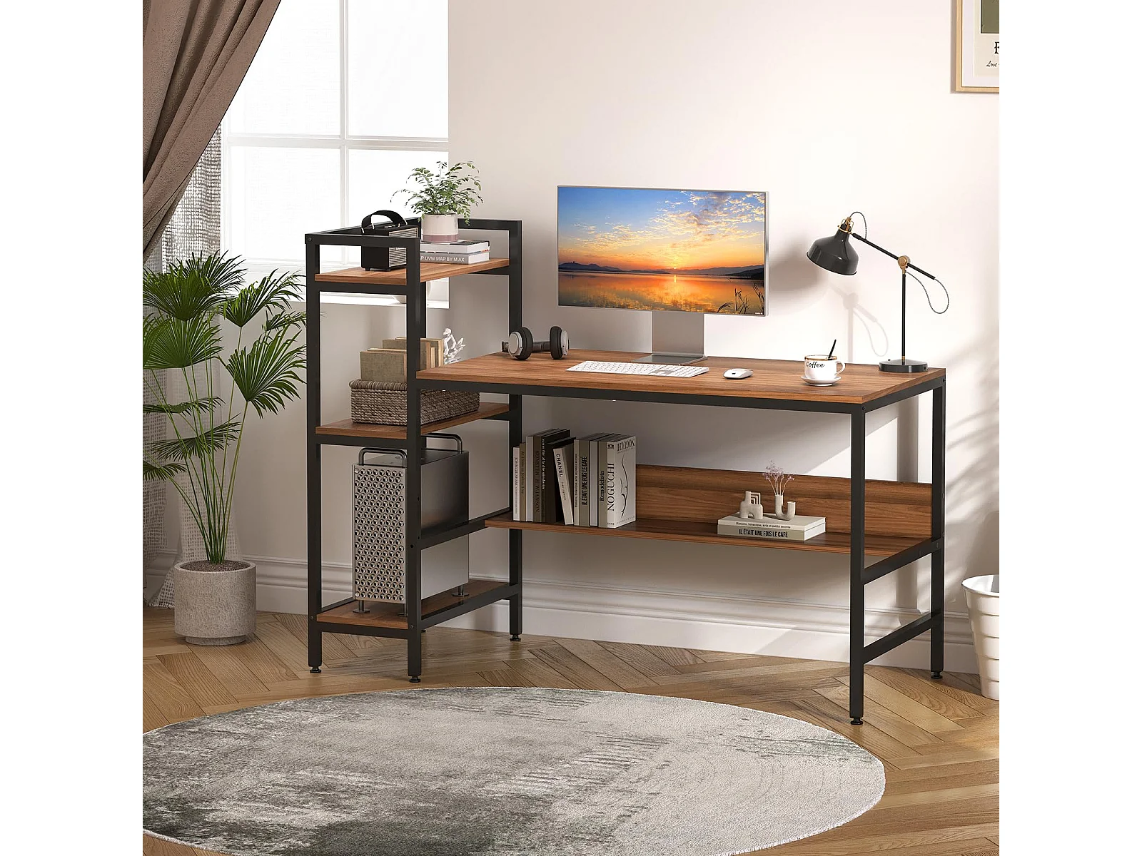 Bureau Informatique avec Etagères de Rangement, Bureau d'Ordinateur en Bois pour Chambre Salon et Maison 136 x 60 x 111 cm - Bois Foncé