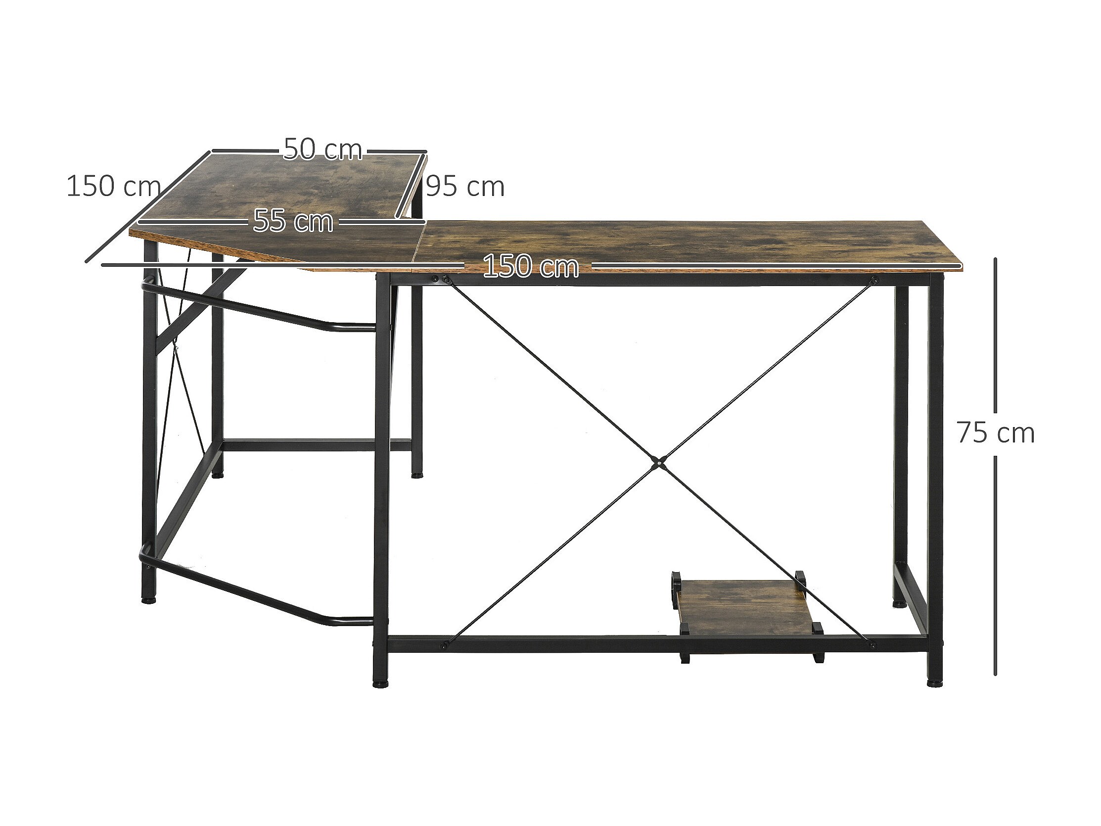 Bureau informatique design industriel bureau d'angle support CPU aspect vieux bois métal noir