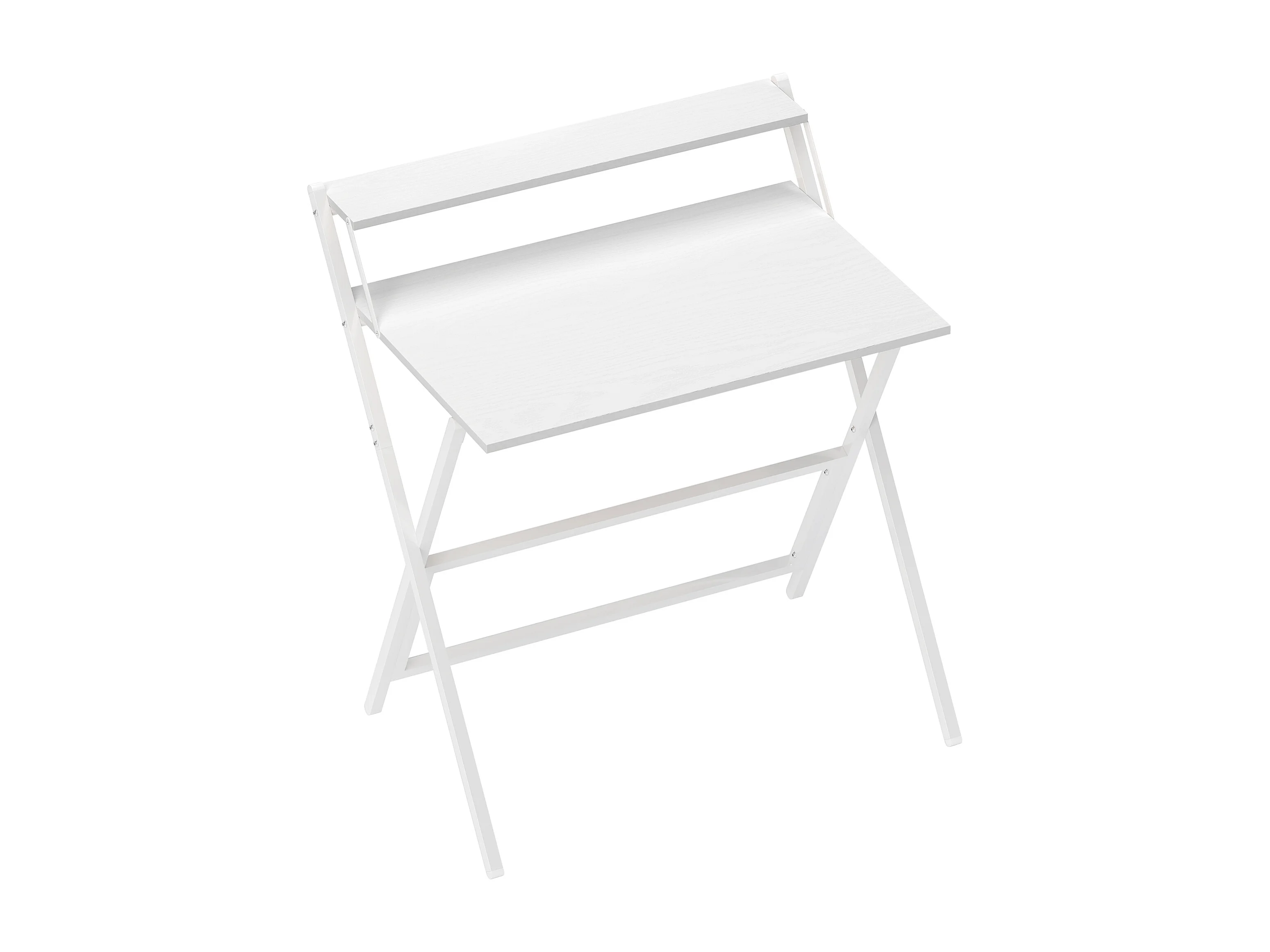 Bureau informatique design pliable - étagère haute - structure acier effet bois blanc