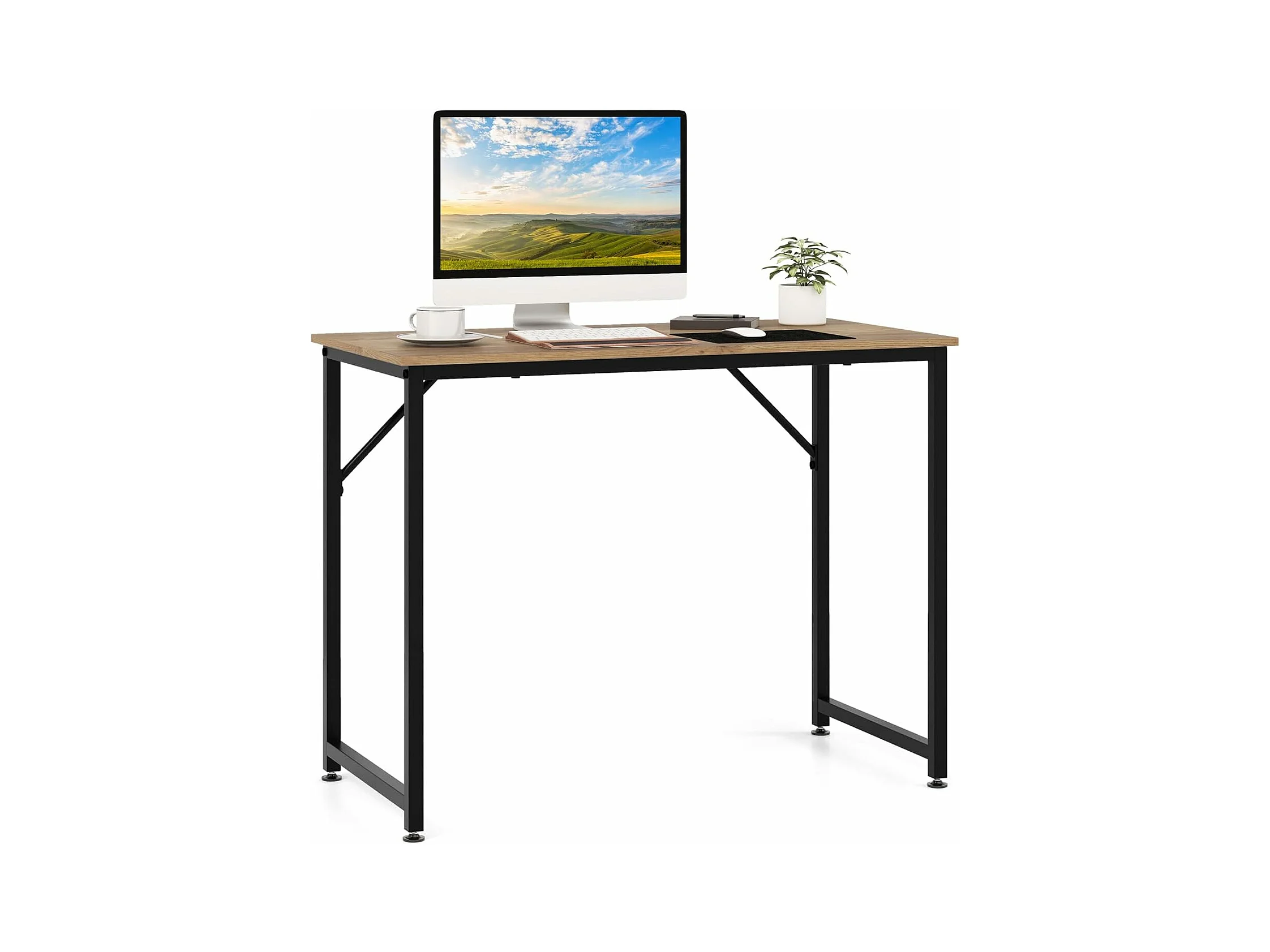 bureau informatique droit - structure en métal -100 x 50 x 75 cm - naturel