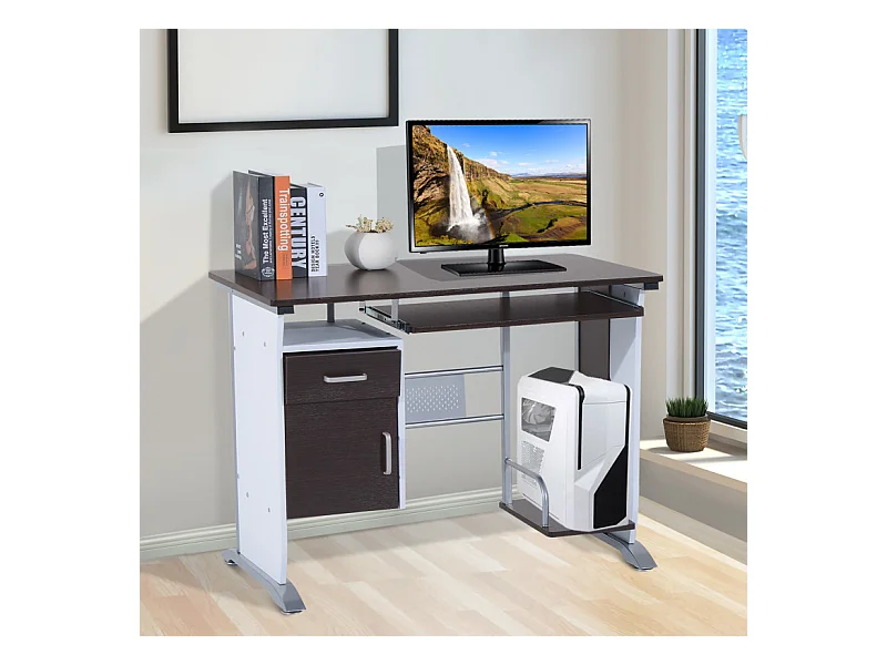 Bureau bibliothèque 2 en 1 - 3 niches - panneaux particules métal