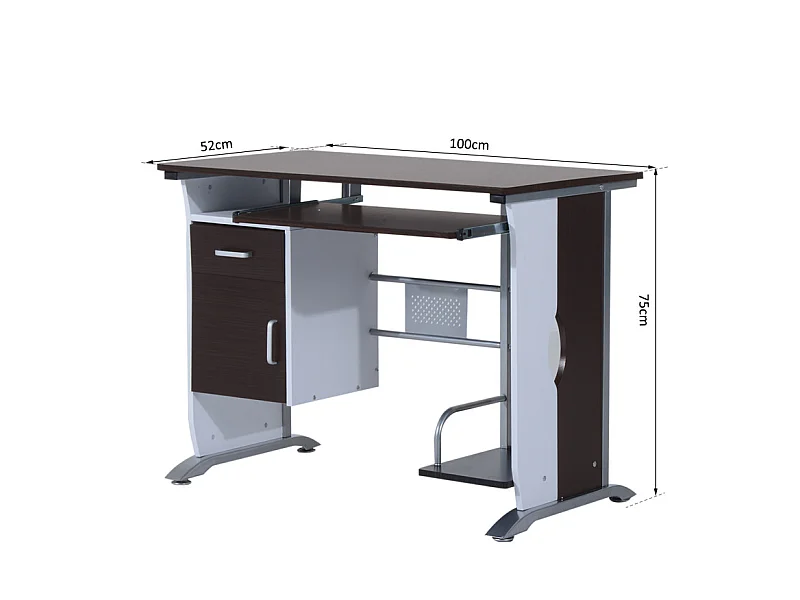 Bureau d'ordinateur Noir et chêne clair 80x40x72cm MDF et métal