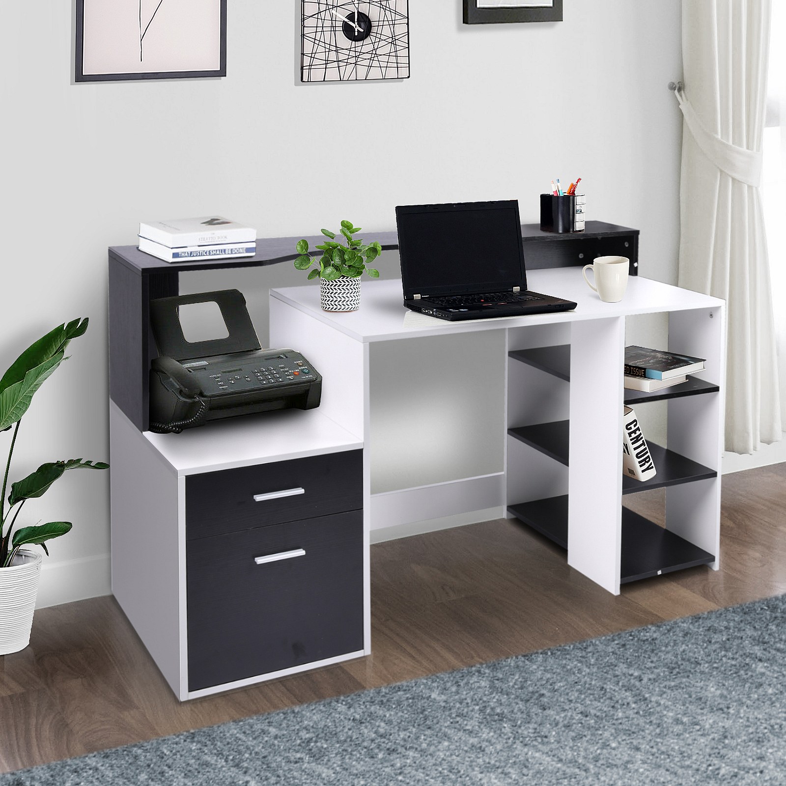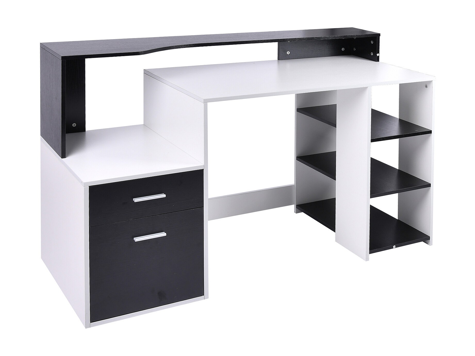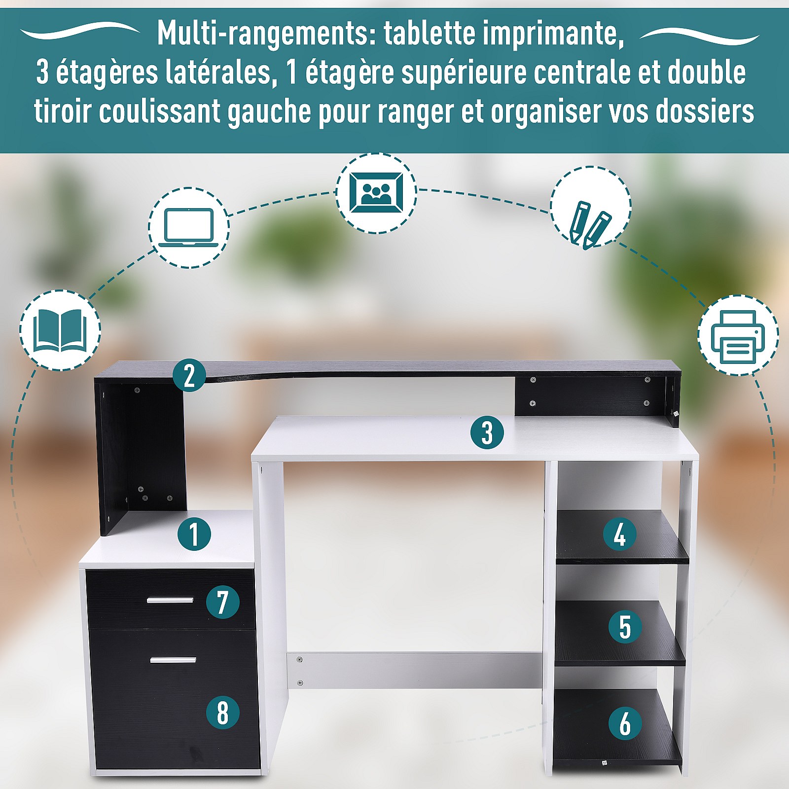 Bureau informatique multimédia design multi-rangements 137 L x 55 l x 92 H cm noir et blanc