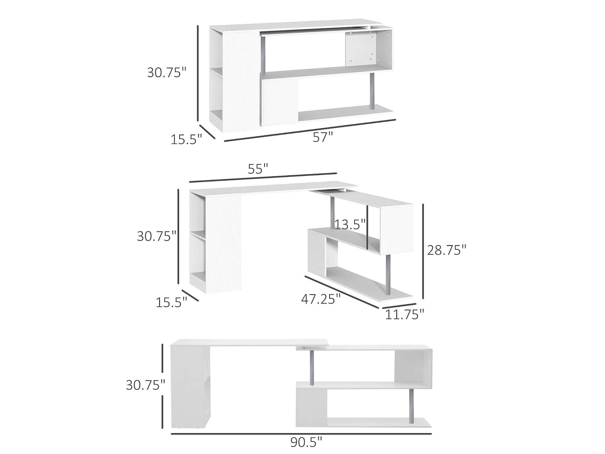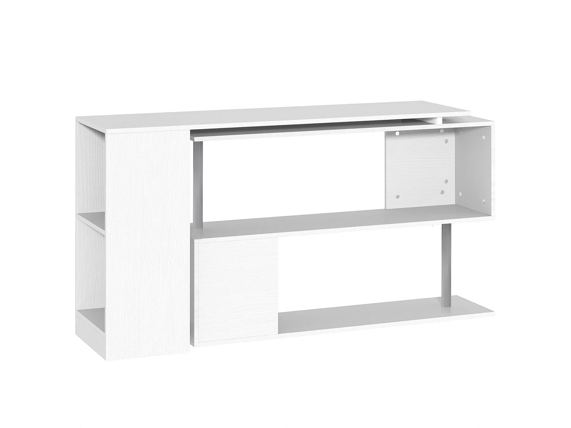 Bureau informatique multimédia modulable design contemporain zig zag bibliothèque intégrée panneaux particules blanc métal