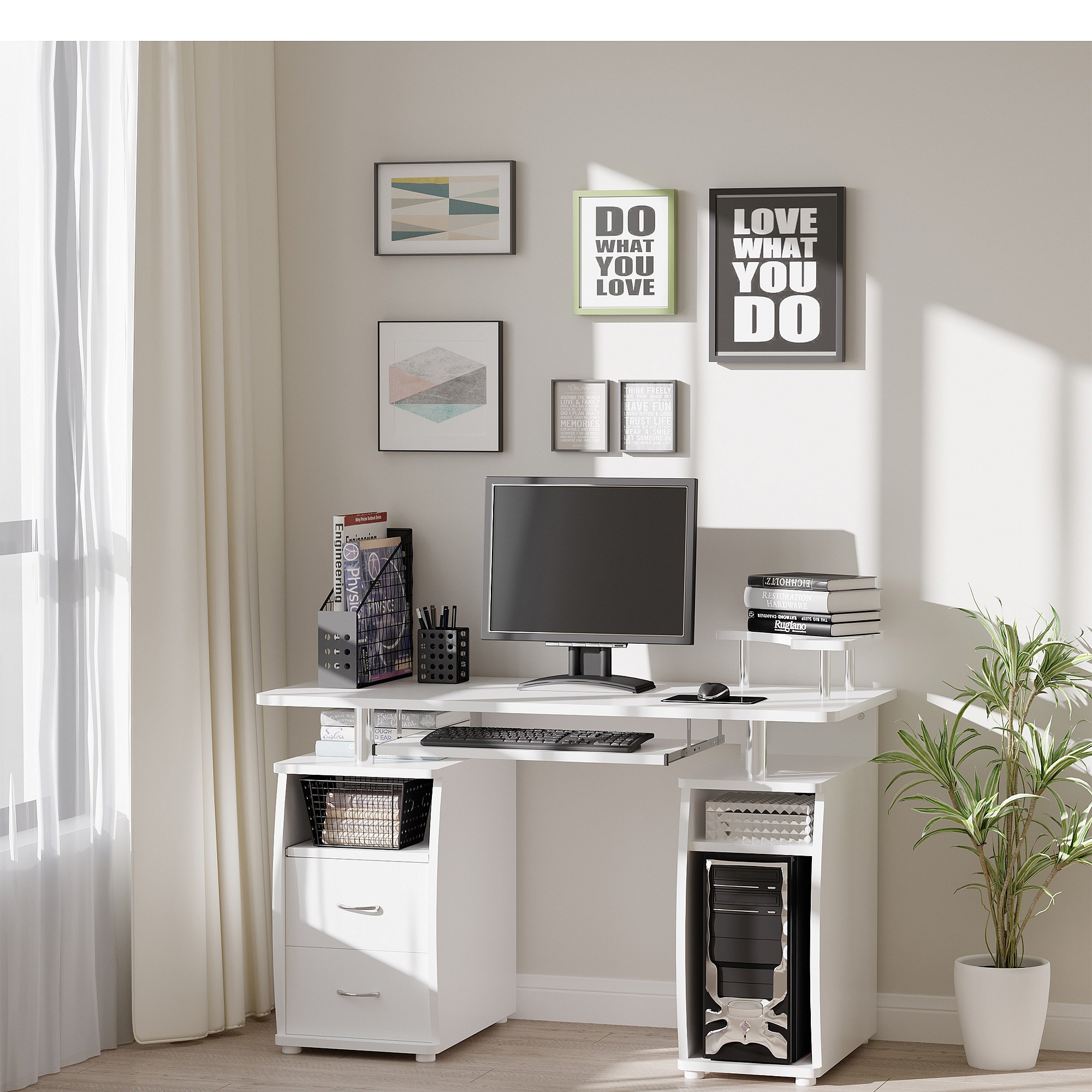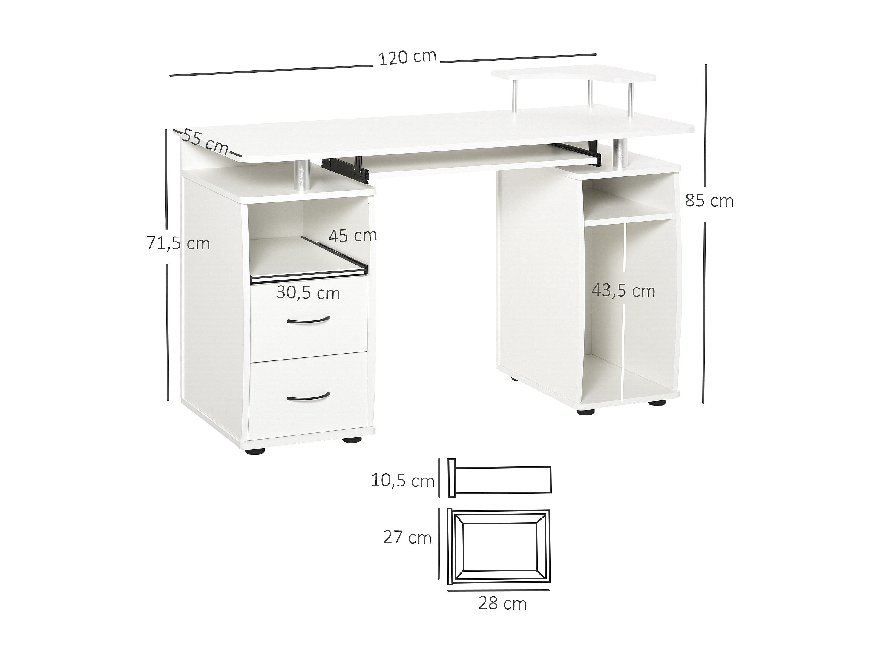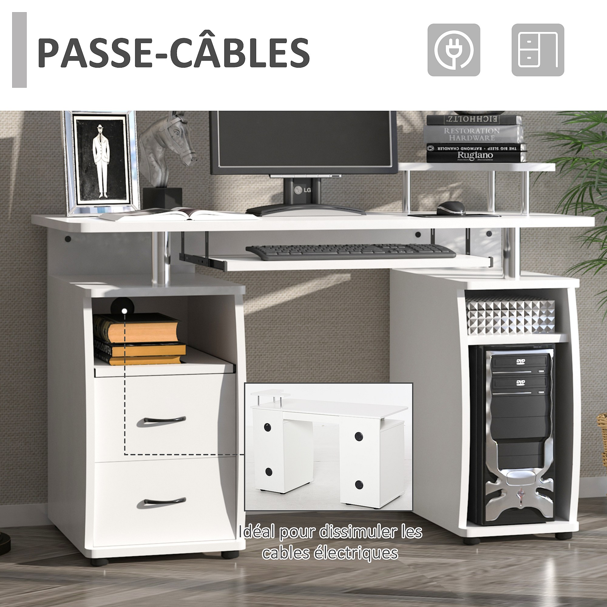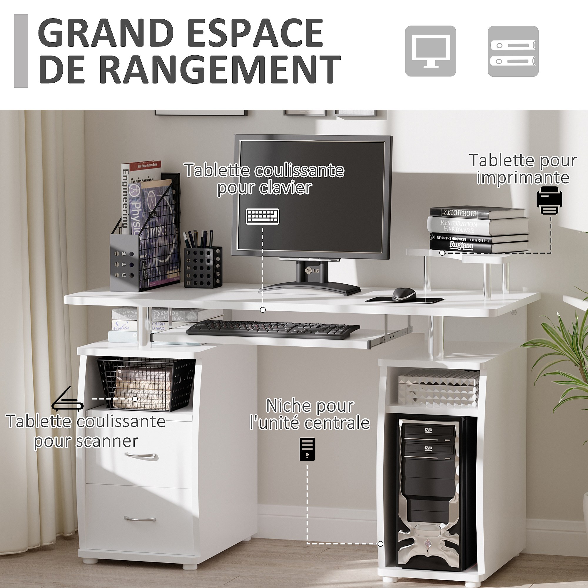 Bureau informatique multimédia multi-rangements 120L x 55l x 85H cm panneaux particules blanc
