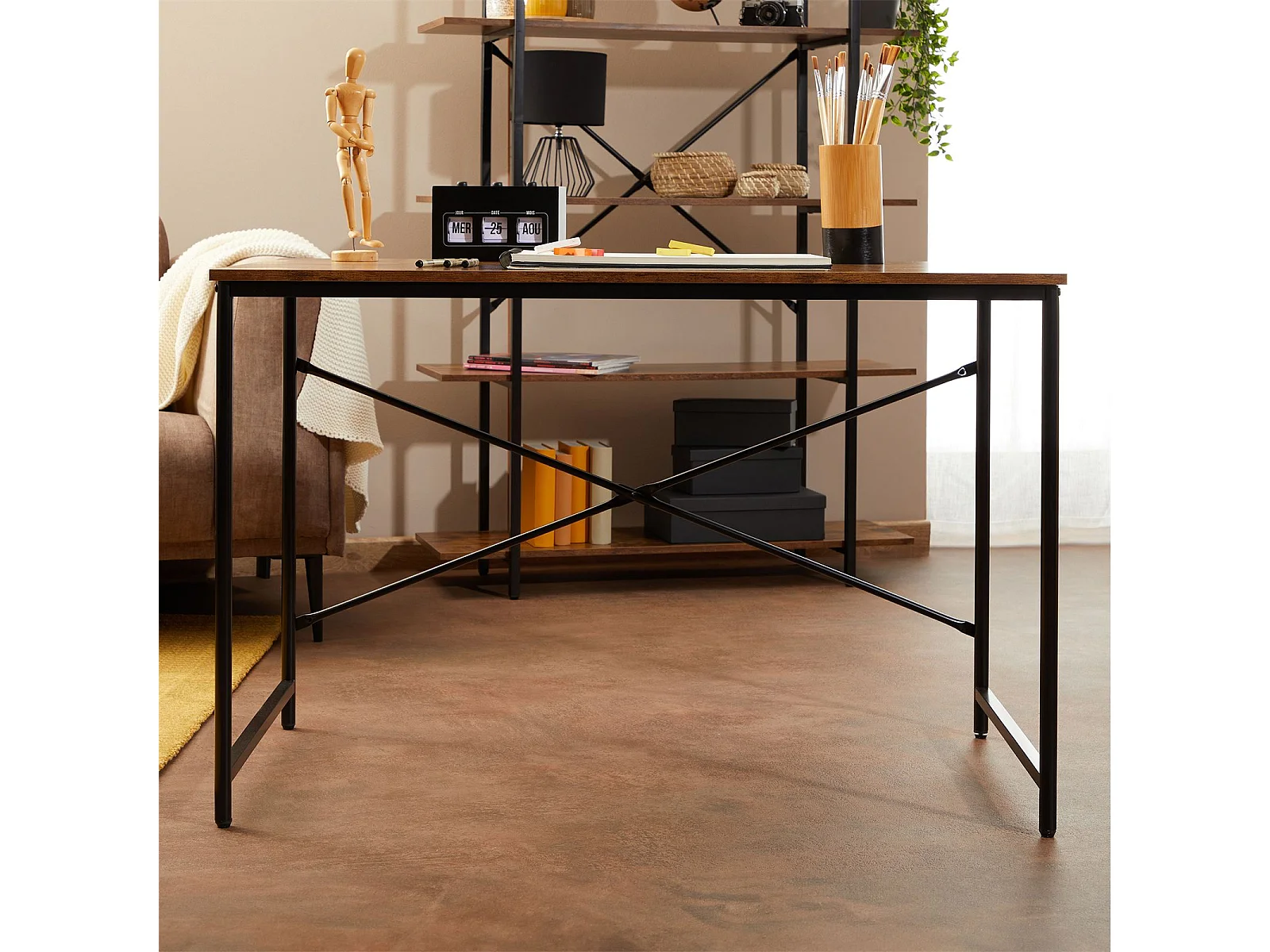 Bureau IZEDA style industriel avec structure en métal et plateau en fibres de bois couleur brun rustique