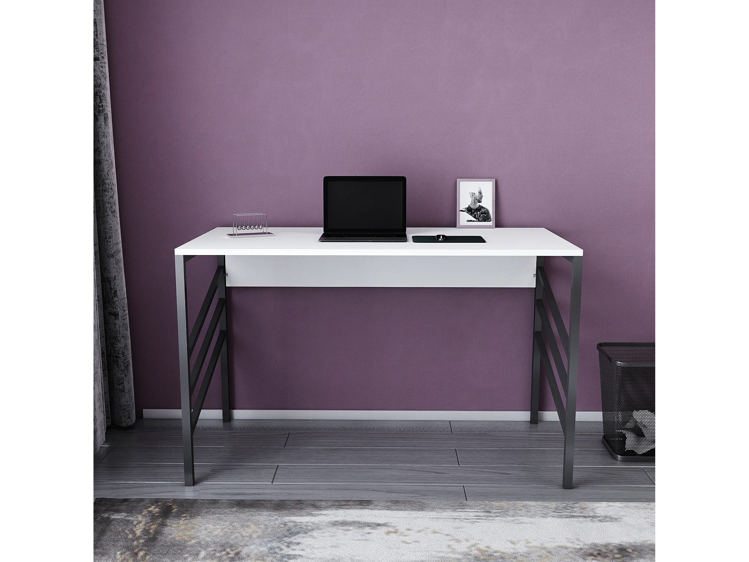 Bureau Josephine avec le cadre en métal (blanc et noir) 75 cm h x 120 cm l x 60 p