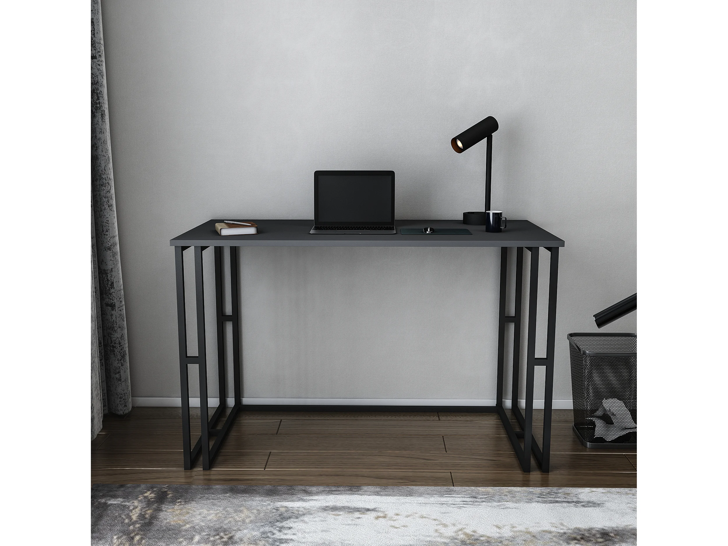 Bureau Kane avec le cadre et pieds en métal 120 x 60 x 75 cm (Noir et Anthracite)