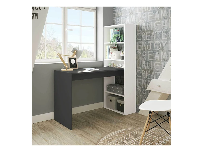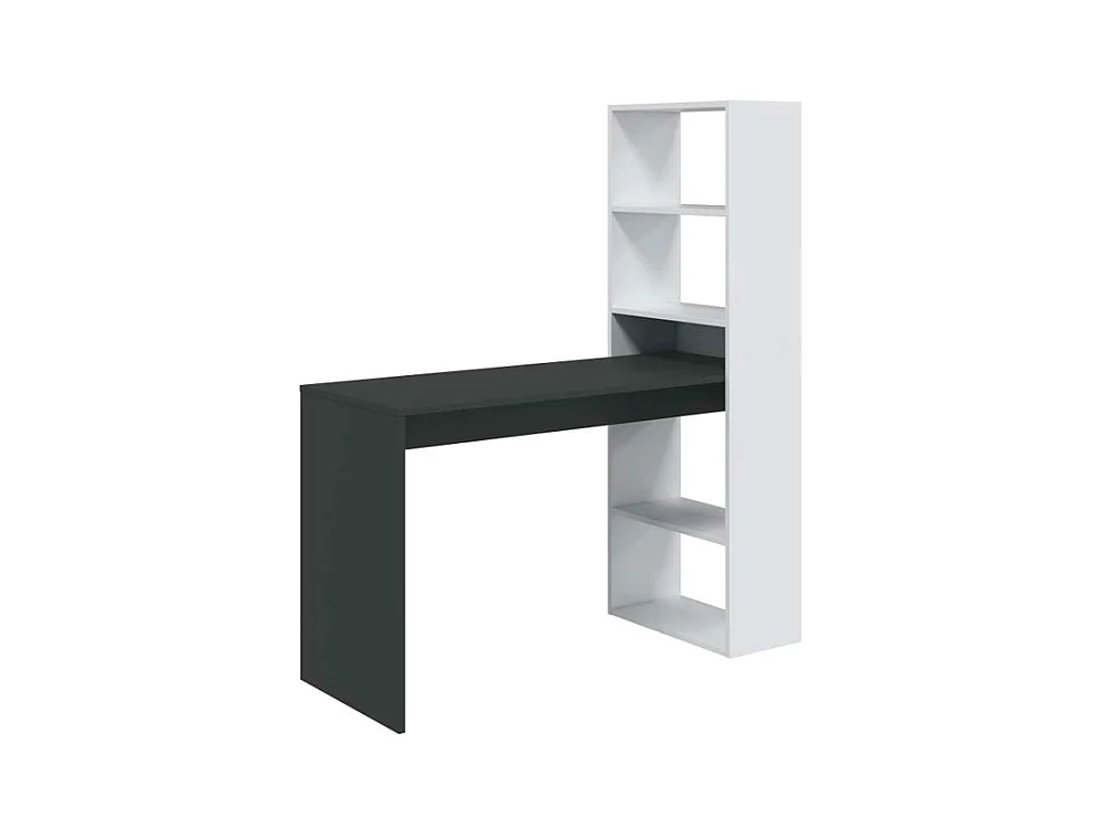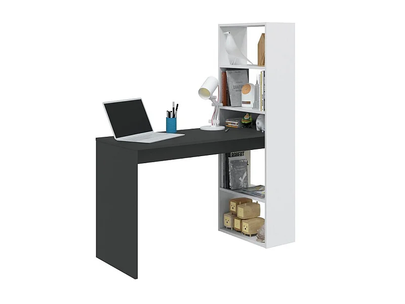 Bureau avec étagères intégrées couleur blanc artic / chêne canadien - Longueur 120 x Hauteur 144 x Profondeur 53 cm