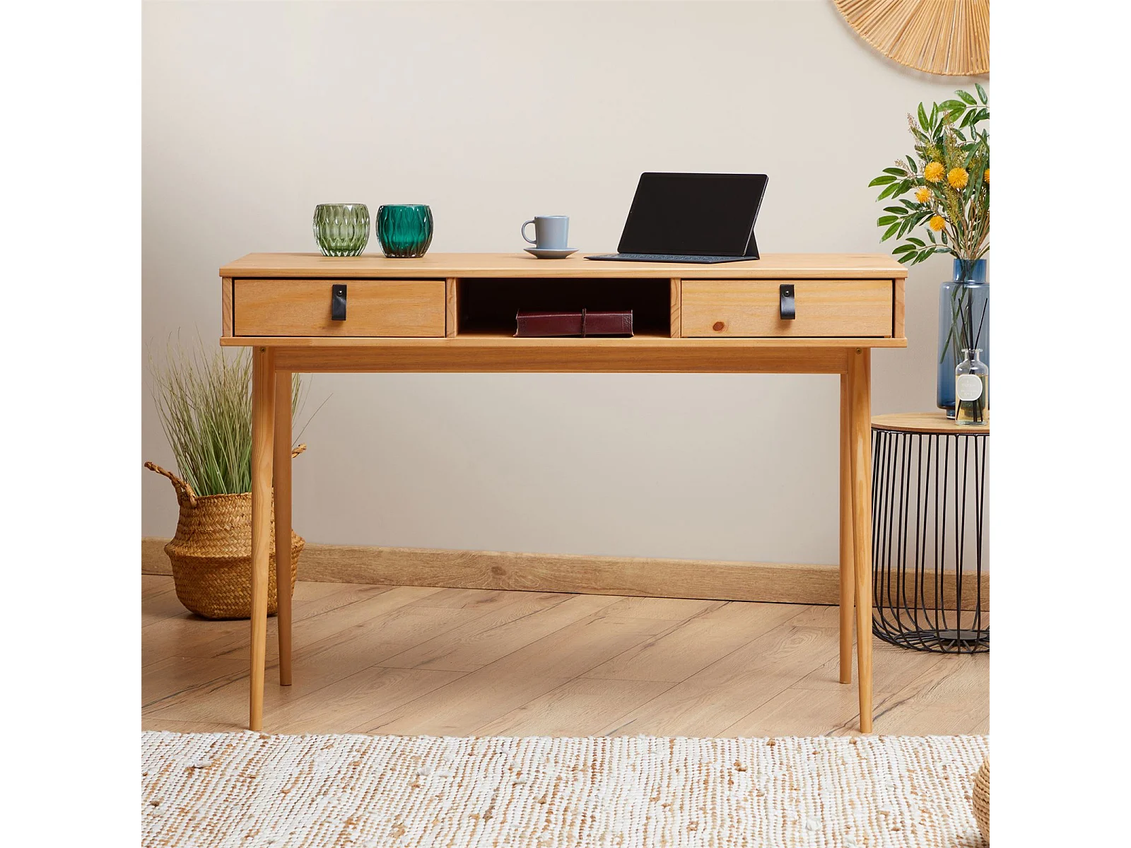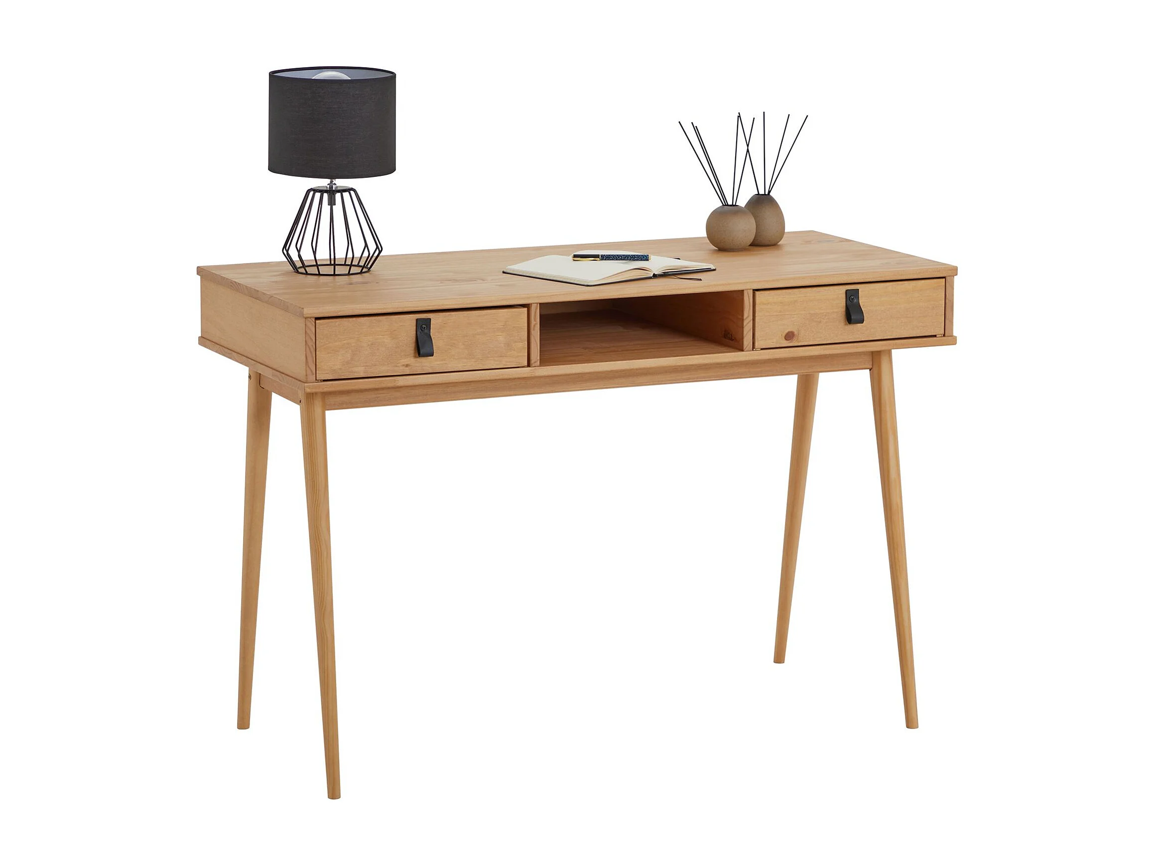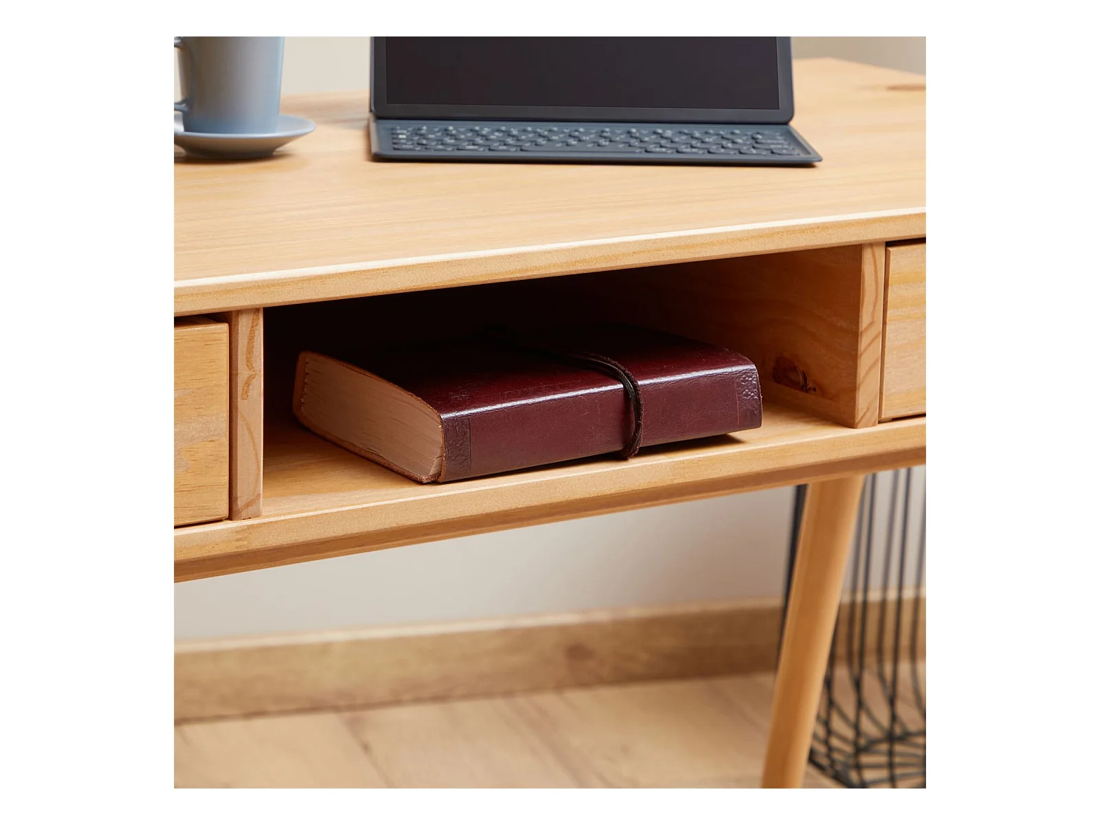 Bureau KIM en pin massif avec 2 tiroirs et 1 niche lasuré brun