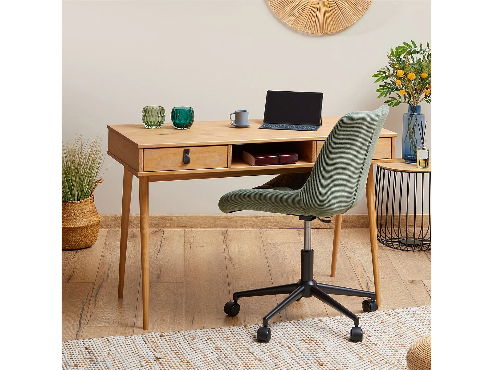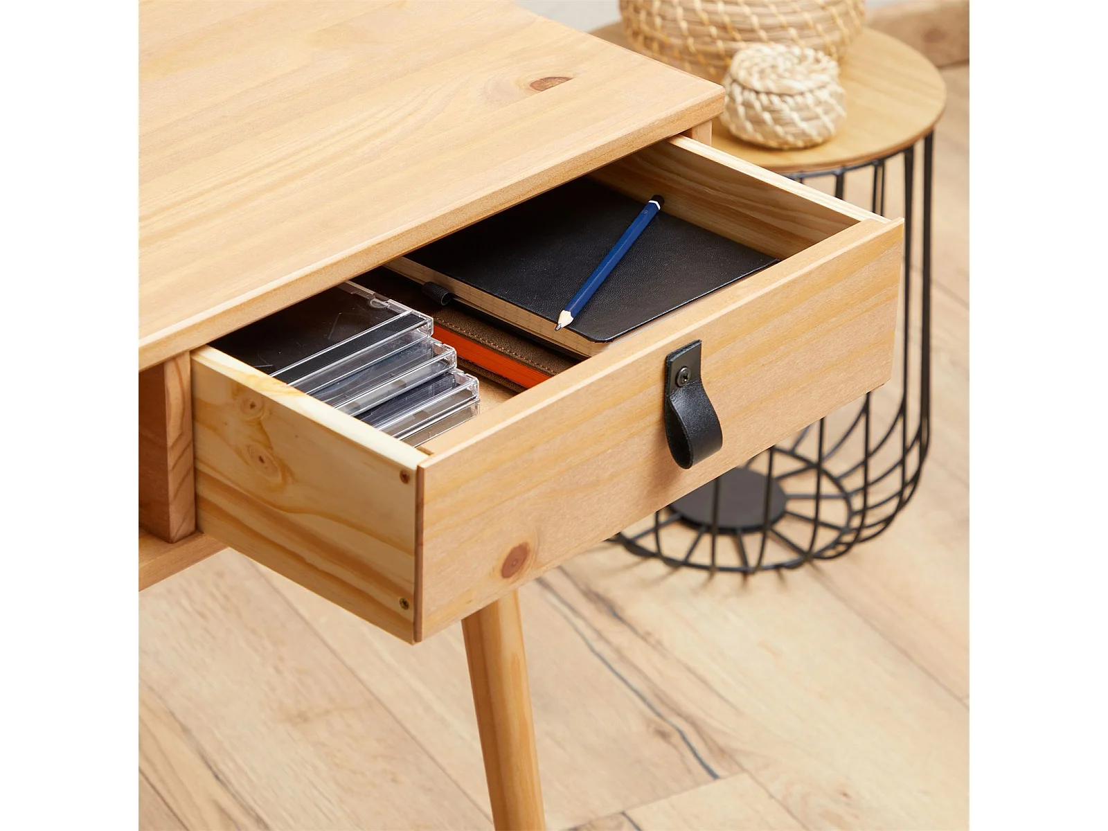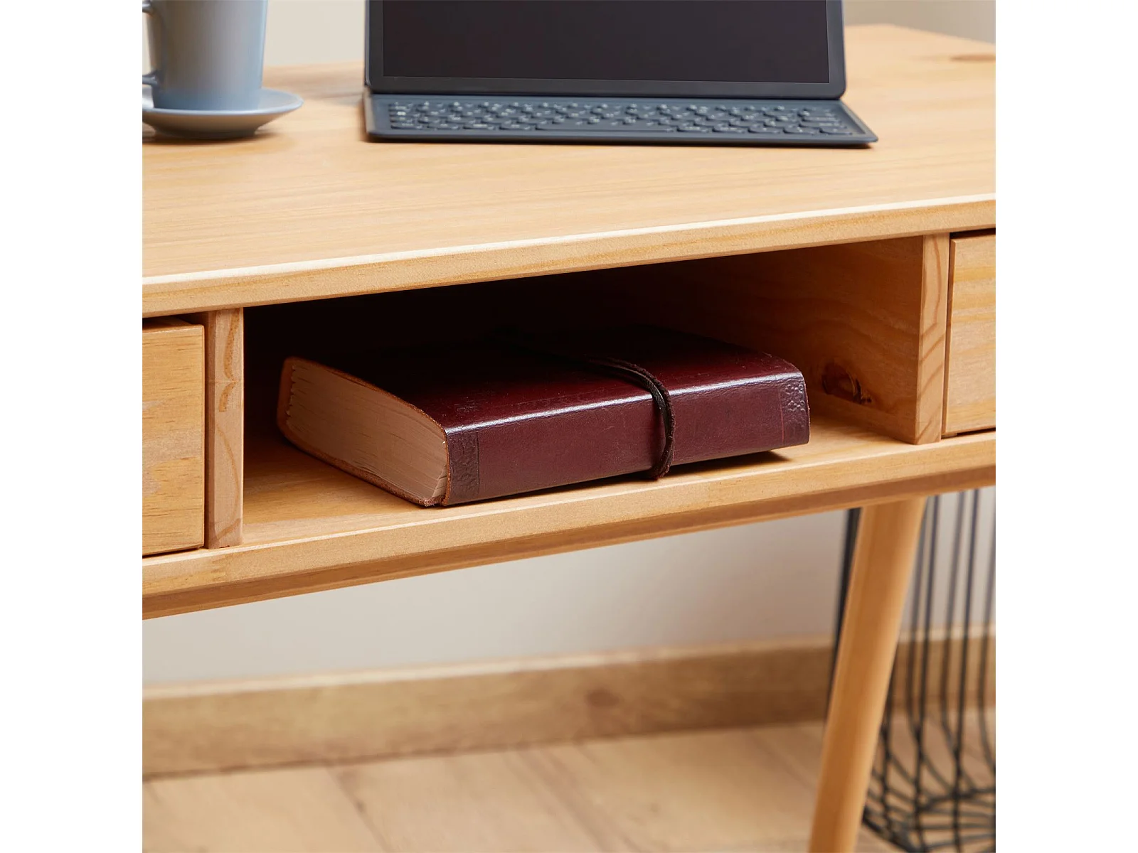 Bureau KIM en pin massif avec 2 tiroirs et 1 niche lasuré brun
