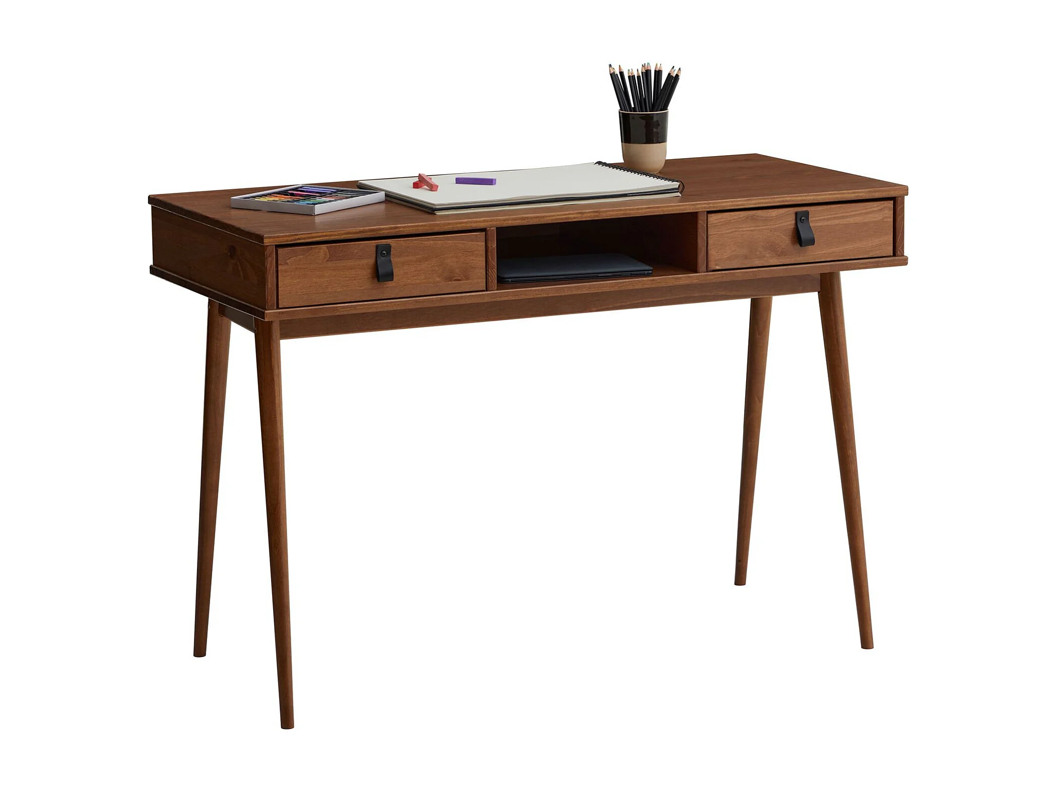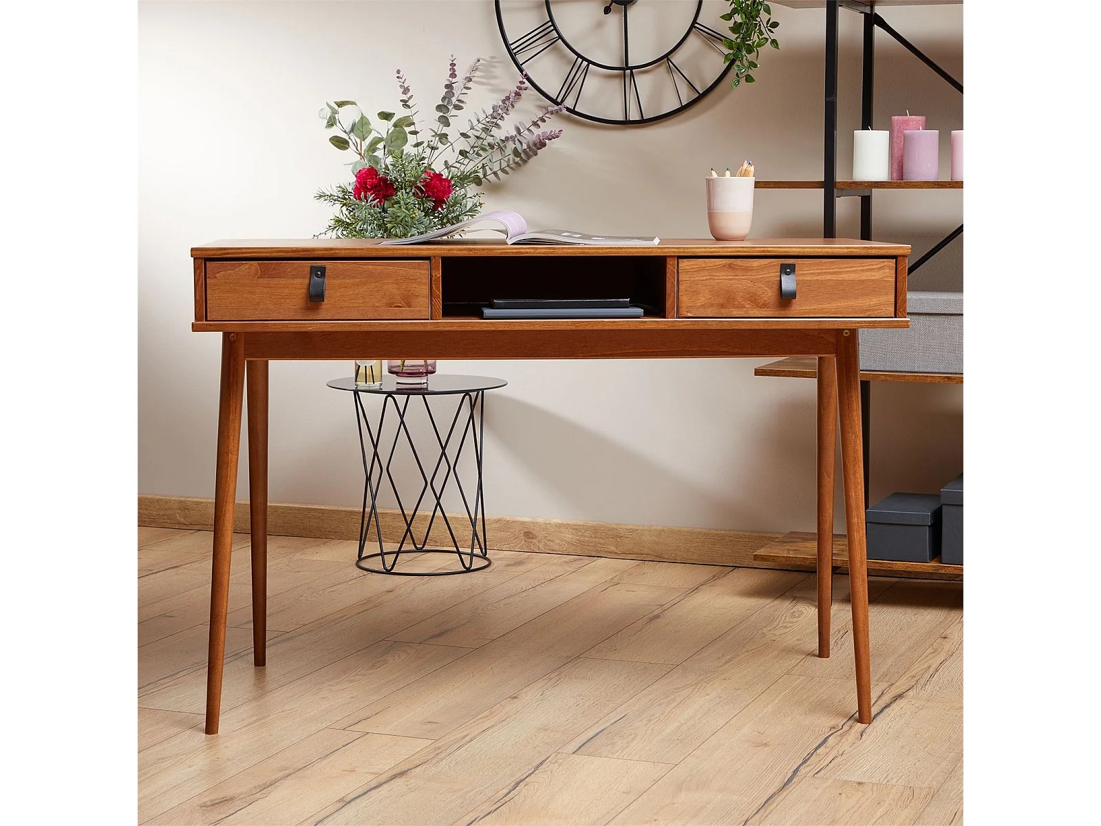 Bureau KIM en pin massif avec 2 tiroirs et 1 niche lasuré brun foncé