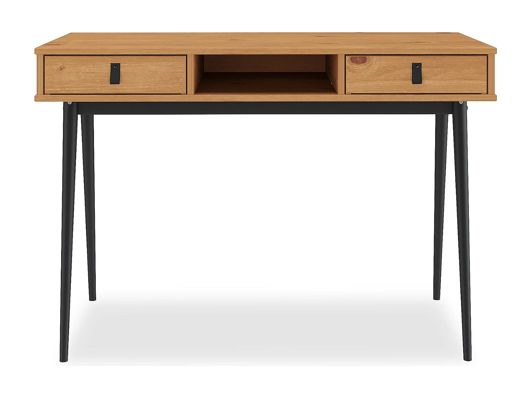 Bureau KIM secrétaire en pin massif avec 2 tiroirs et 1 niche bois lasuré chêne/noir